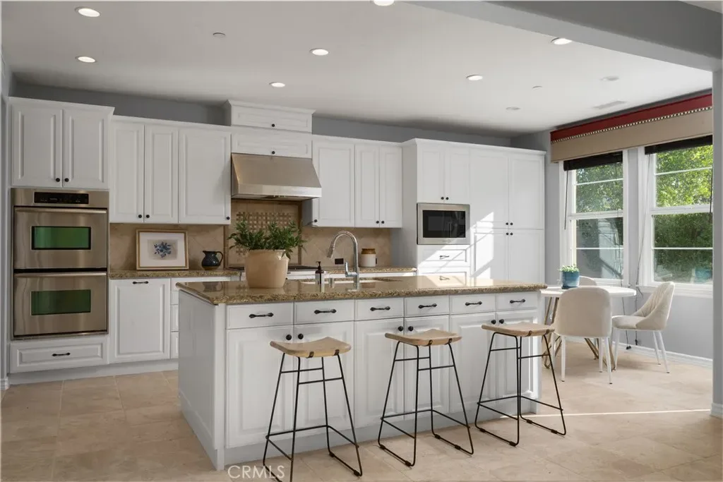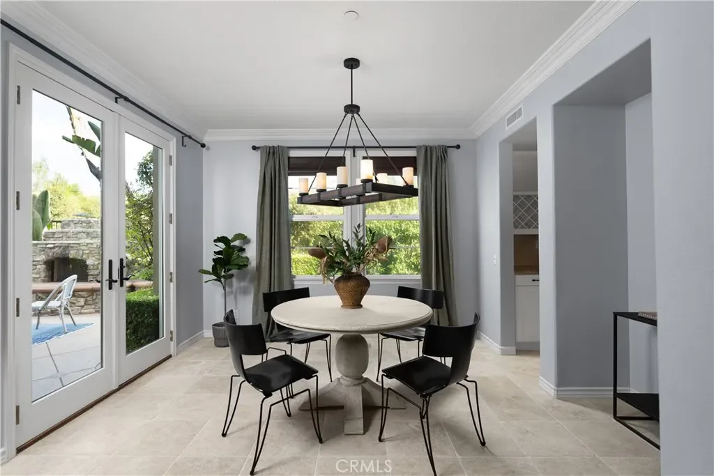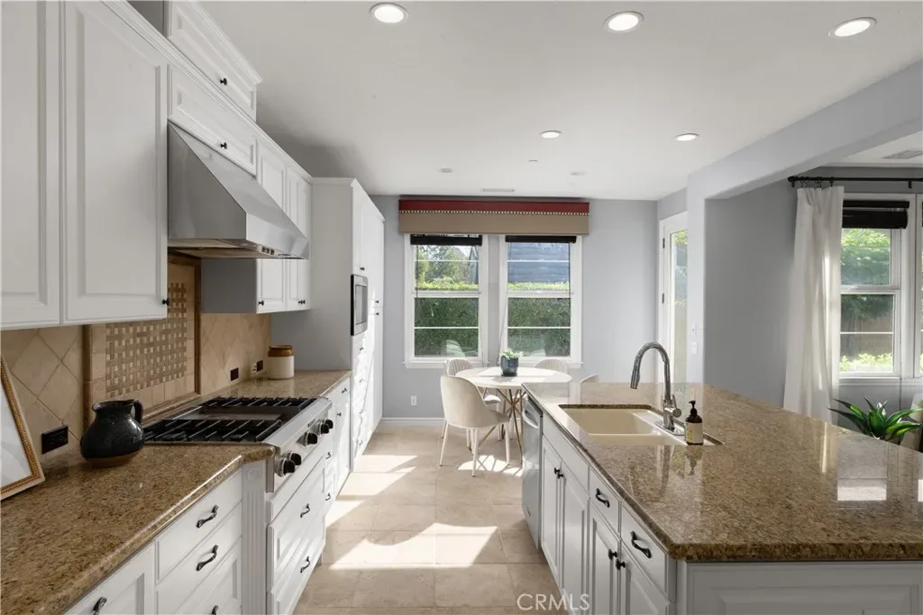 The private Casita could easily be converted into yet another bedroom. Throughout the home, custom millwork, arched doorways, trim, and built-in cabinetry add both elegance and practicality. The finishes include natural stone floors, elegant granite countertops, custom wood cabinetry, tailored window treatments, and neutral paint tones that enhance the home’s timeless appeal.