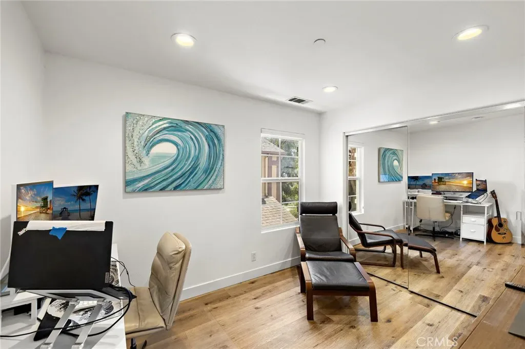 The primary suite serves as a peaceful retreat, highlighted by a custom closet and a striking Venetian plaster accent wall that adds warmth and texture. Secondary spaces are equally well-appointed, including a refreshed guest bath with an enhanced shower and a versatile third bedroom ideal for a home office or guest accommodations.