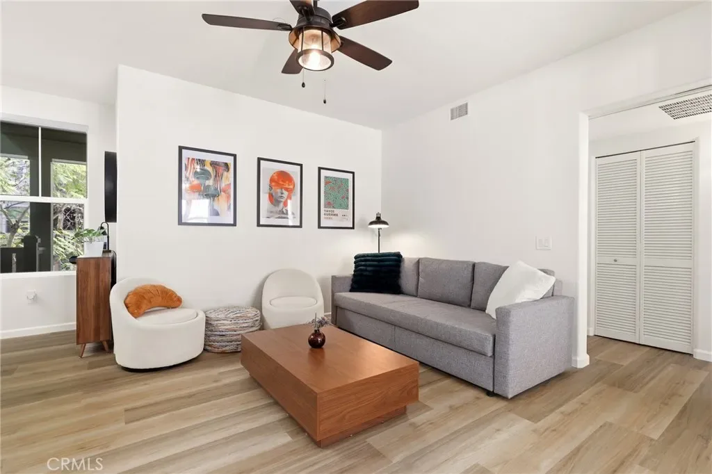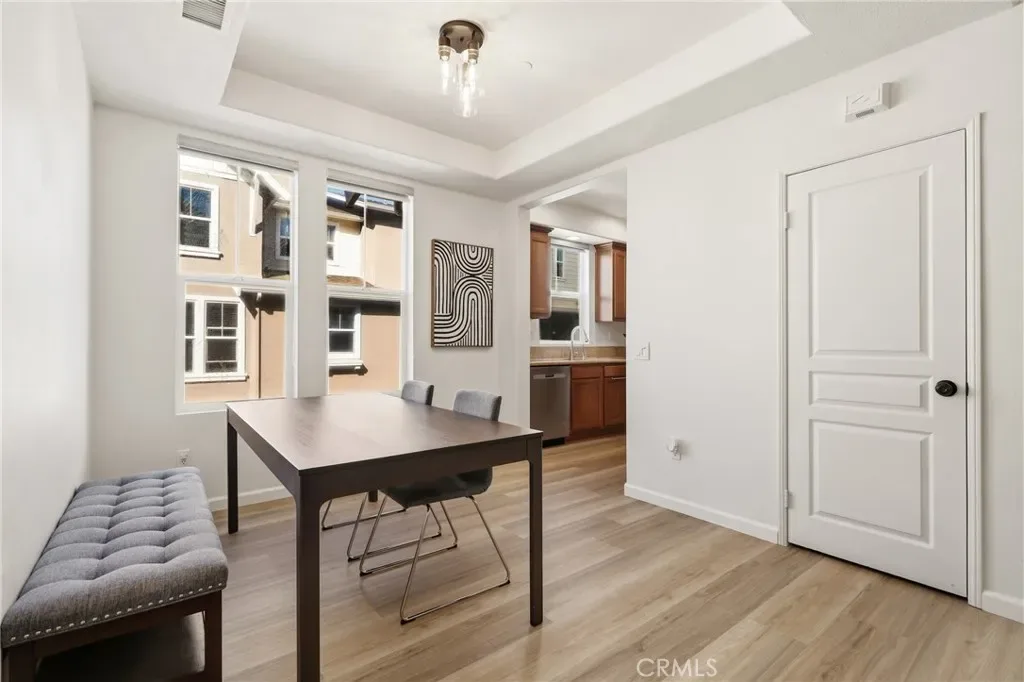 Welcome to this nicely upgraded upper-level carriage unit. This move-in-ready two-bedroom, two-bath home is tucked into a quiet nook of Terramore Village in Ladera Ranch. Stairs leading to the front door bring you to the main level, which is bright, spacious, and ideal for entertaining. This level includes a bedroom, a full bathroom, and a convenient stackable laundry closet. The primary suite is privately situated on the upper level and features an updated en-suite bathroom and a walk-in closet with built-in organizers. A sizeable loft area—currently used as a home office—completes the upper level. Recent upgrades include LVP flooring and a whole-house water softener. The home also comes with a tandem garage with private access, as well as a bonus assigned third parking space. Enjoy this beautiful home along with everything Ladera Ranch has to offer, including resort-style pools, a water park, splash pads, tennis and basketball courts, soccer fields, community gardens, an orange grove, mountain biking and hiking trails, community events, and more.