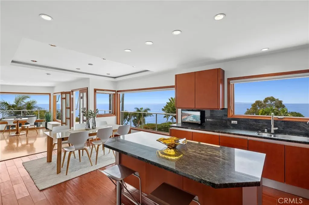 From its enviable perch above Upper Victoria Beach, this extraordinary home offers what many consider to be some of the finest ocean views in Laguna Beach. Stunning vistas begin at the driveway and continue to expand throughout the indoor and outdoor living spaces. Truly panoramic ocean views capture whitewater, Catalina Island, vibrant sunsets, evening lights, and the dramatic coastline extending north and south. Spacious wraparound decks off the kitchen, dining, and living areas showcase these captivating views both day and night, creating a seamless indoor-outdoor living experience. The approximately 2,736-square-foot floor plan includes three bedrooms, an office, and three and one half bathrooms, and is filled with natural light throughout. The chef’s kitchen is thoughtfully appointed with an oversized island and premium appliances, including a Wolf range and Sub-Zero refrigerator, and opens to exceptional ocean views, creating a seamless connection to the surrounding landscape. The primary suite features a walk-in closet and a spa-like bath with a spacious shower and direct access to outdoor space to take in the views. The thoughtfully designed floor plan includes two main-level bedrooms, providing added flexibility within the home. A driveway provides additional parking beyond the two-car garage. The ocean is just moments away, with convenient access to the Montage Resort, scenic parks and trails, and the restaurants, shops, and galleries of Laguna Beach.