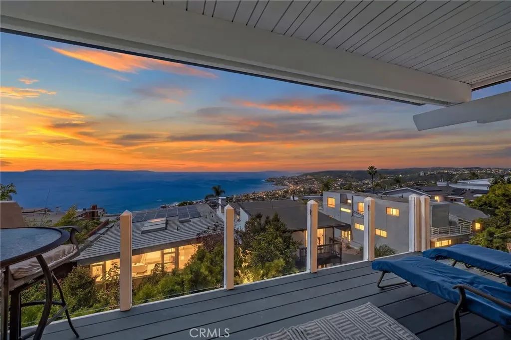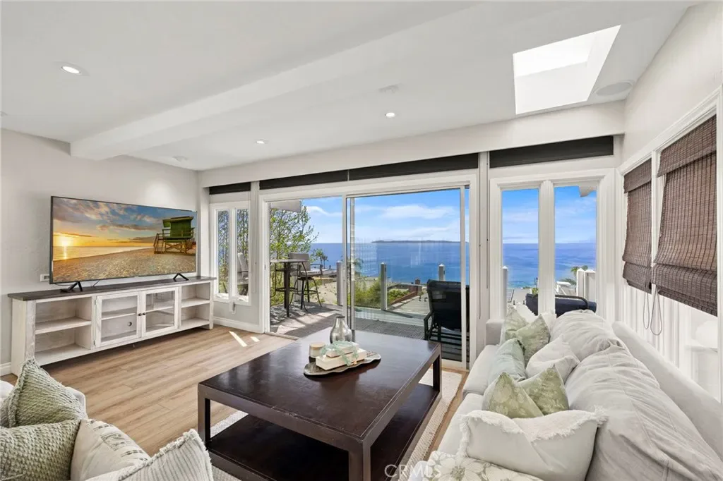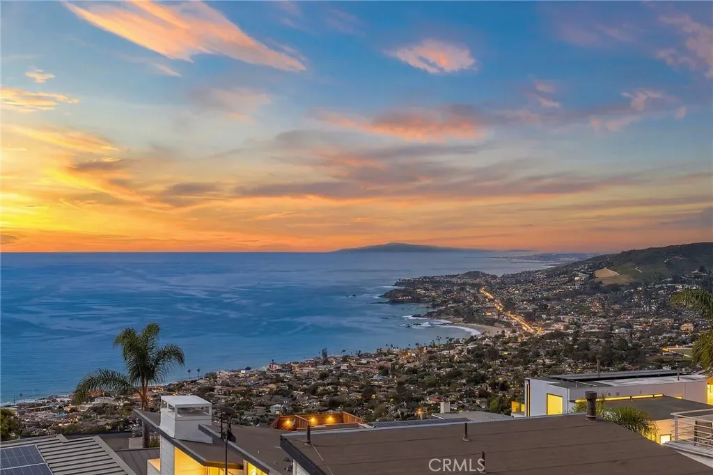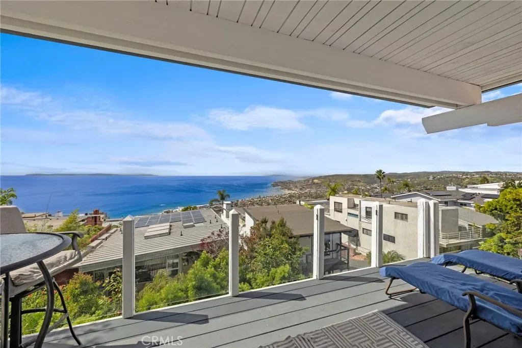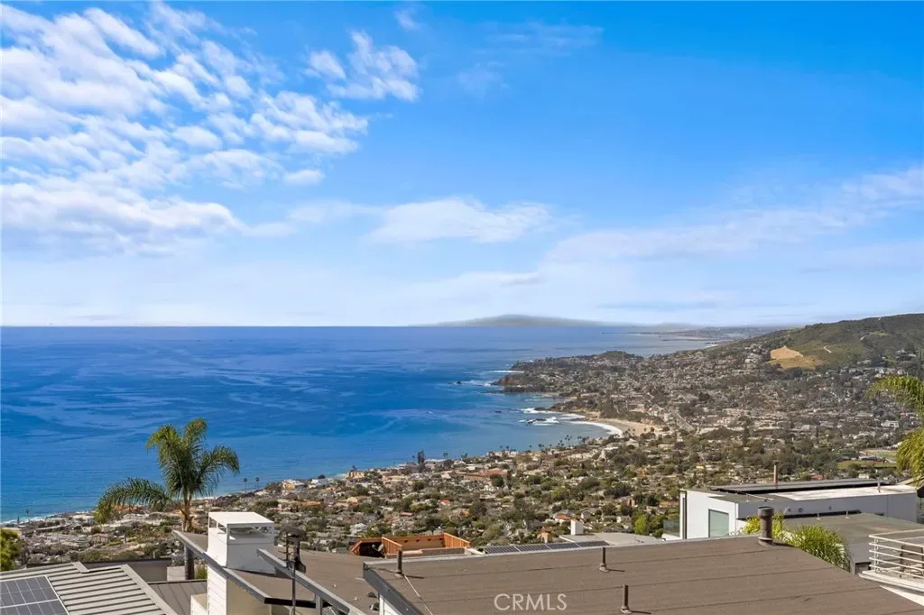 This stunning coastal retreat offers sweeping, unobstructed ocean and coastline views from Catalina Island up the coast toward Rancho Palos Verdes, with whitewater surf, vibrant sunsets, and sparkling city lights along the shoreline. The home has undergone an extensive renovation, with the owners investing a significant amount of time and care into every detail to create a modern, luxurious coastal living experience. Ocean views are visible from the main living areas, the spacious deck off the living room, and a private deck off the primary suite. The open concept living space features high beamed ceilings, skylights, and hardwood flooring, creating a bright and inviting setting for everyday living and entertaining. The kitchen has been fully remodeled with custom cabinetry, white marble countertops, premium Wolf appliances, and a breakfast bar. Large windows and the adjacent deck with glass railings allow for sit-down ocean views and seamless indoor-outdoor flow. The home includes four bedrooms, each with an en-suite bathroom, offering privacy and convenience. The primary suite features a private deck to take in the breathtaking views. Renovated bathrooms include updated fixtures, vanities, countertops, toilets, and new shower enclosures. Additional interior improvements include new flooring, windows, doors, plumbing, and wall insulation. Two bedrooms with separate entrances provide flexible use for guests, a home office, or studio. In addition to the two ocean-view decks, outdoor living is enhanced by two covered courtyards and an upgraded patio with new decking, surrounded by lush foliage for complete privacy and relaxation. Nearby Moulton Meadows Park offers tennis, basketball, pickle ball, soccer, play structures, a dog park, and world renowned hiking; while the best beaches, restaurants, and galleries Laguna Beach has to offer are just moments away.