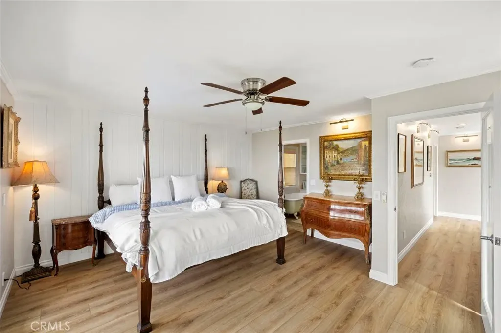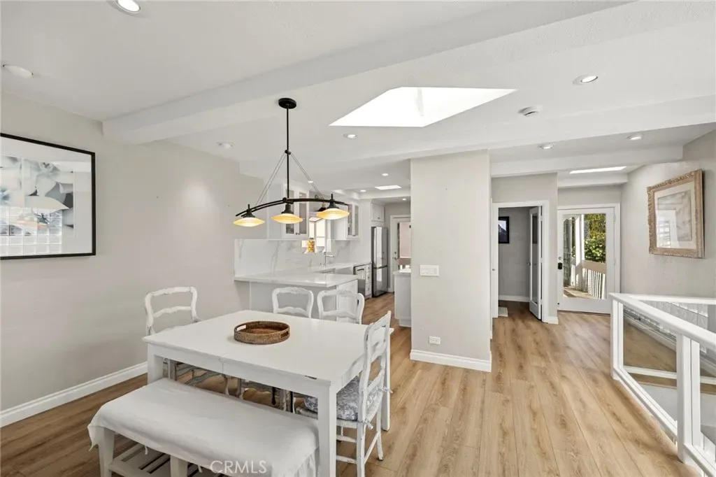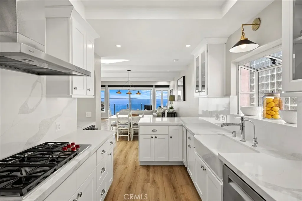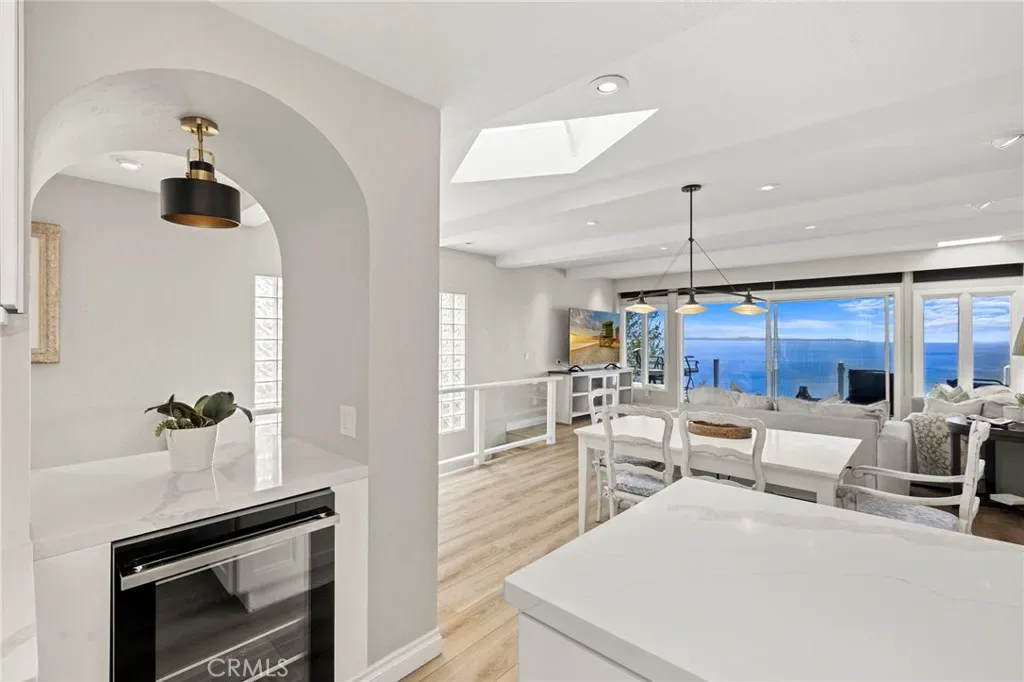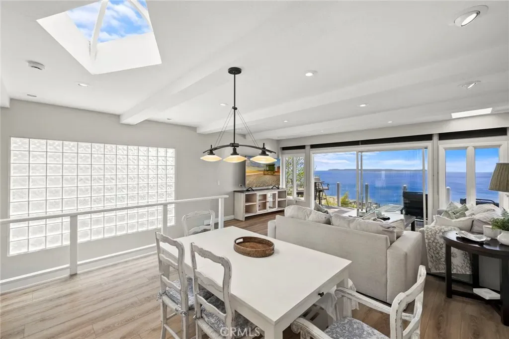 This stunning coastal retreat offers sweeping, unobstructed ocean and coastline views from Catalina Island up the coast toward Rancho Palos Verdes, with whitewater surf, vibrant sunsets, and sparkling city lights along the shoreline. The home has undergone an extensive renovation, with the owners investing a significant amount of time and care into every detail to create a modern, luxurious coastal living experience. Ocean views are visible from the main living areas, the spacious deck off the living room, and a private deck off the primary suite. The open concept living space features high beamed ceilings, skylights, and hardwood flooring, creating a bright and inviting setting for everyday living and entertaining. The kitchen has been fully remodeled with custom cabinetry, white marble countertops, premium Wolf appliances, and a breakfast bar. Large windows and the adjacent deck with glass railings allow for sit-down ocean views and seamless indoor-outdoor flow. The home includes four bedrooms, each with an en-suite bathroom, offering privacy and convenience. The primary suite features a private deck to take in the breathtaking views. Renovated bathrooms include updated fixtures, vanities, countertops, toilets, and new shower enclosures. Additional interior improvements include new flooring, windows, doors, plumbing, and wall insulation. Two bedrooms with separate entrances provide flexible use for guests, a home office, or studio. In addition to the two ocean-view decks, outdoor living is enhanced by two covered courtyards and an upgraded patio with new decking, surrounded by lush foliage for complete privacy and relaxation. Nearby Moulton Meadows Park offers tennis, basketball, pickle ball, soccer, play structures, a dog park, and world renowned hiking; while the best beaches, restaurants, and galleries Laguna Beach has to offer are just moments away.