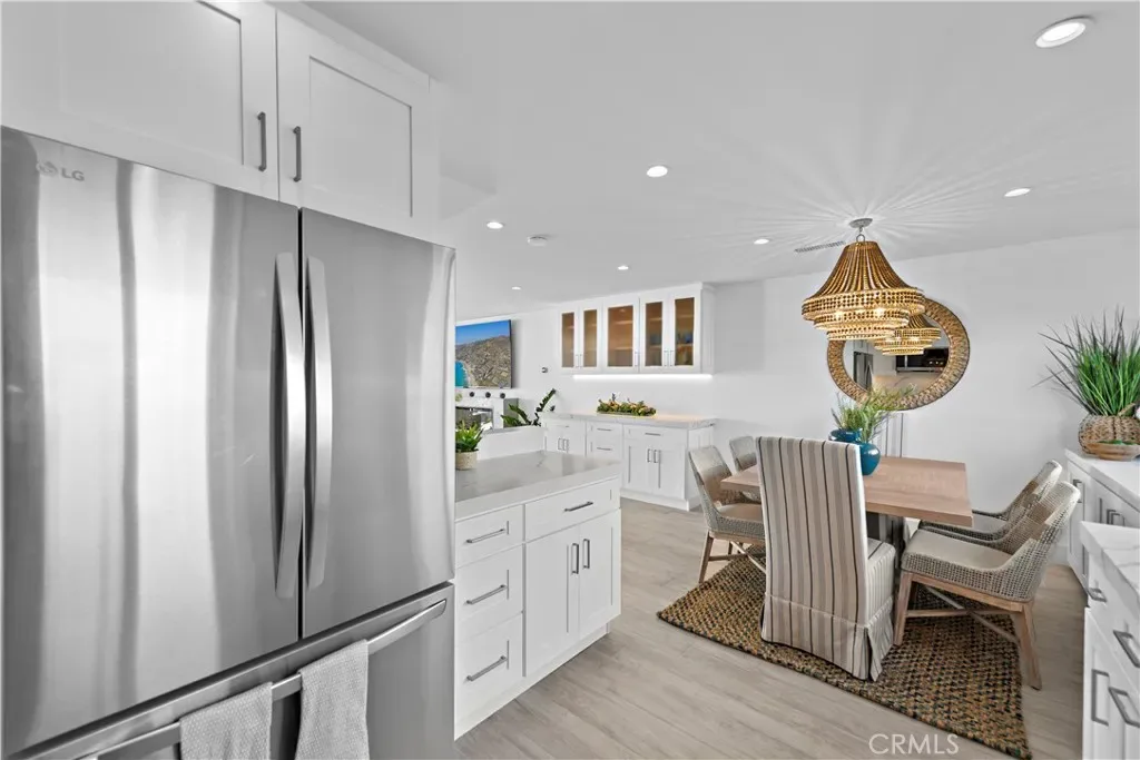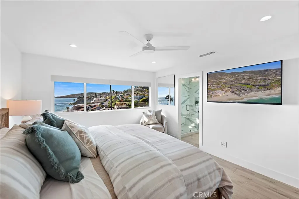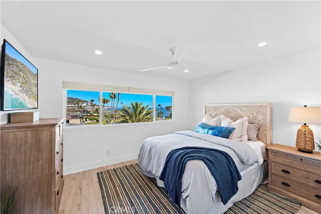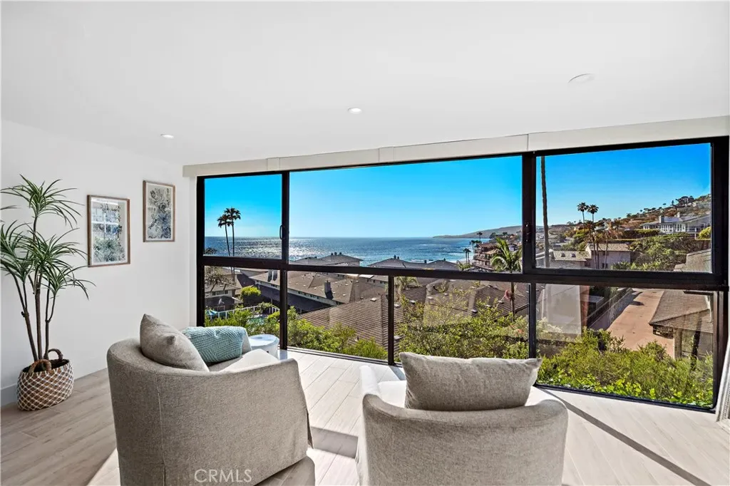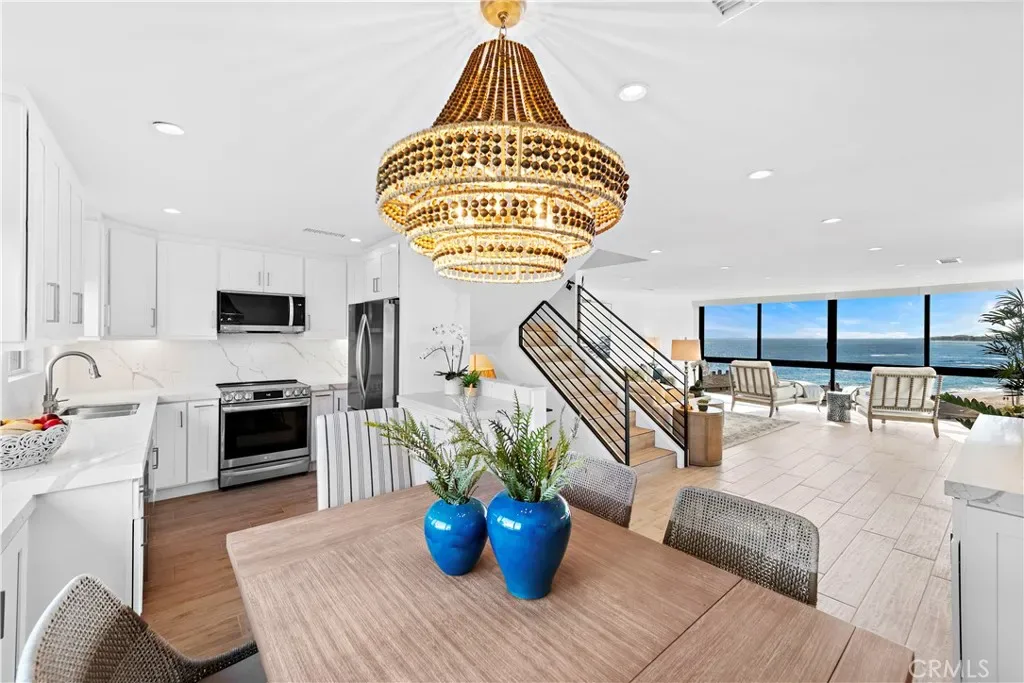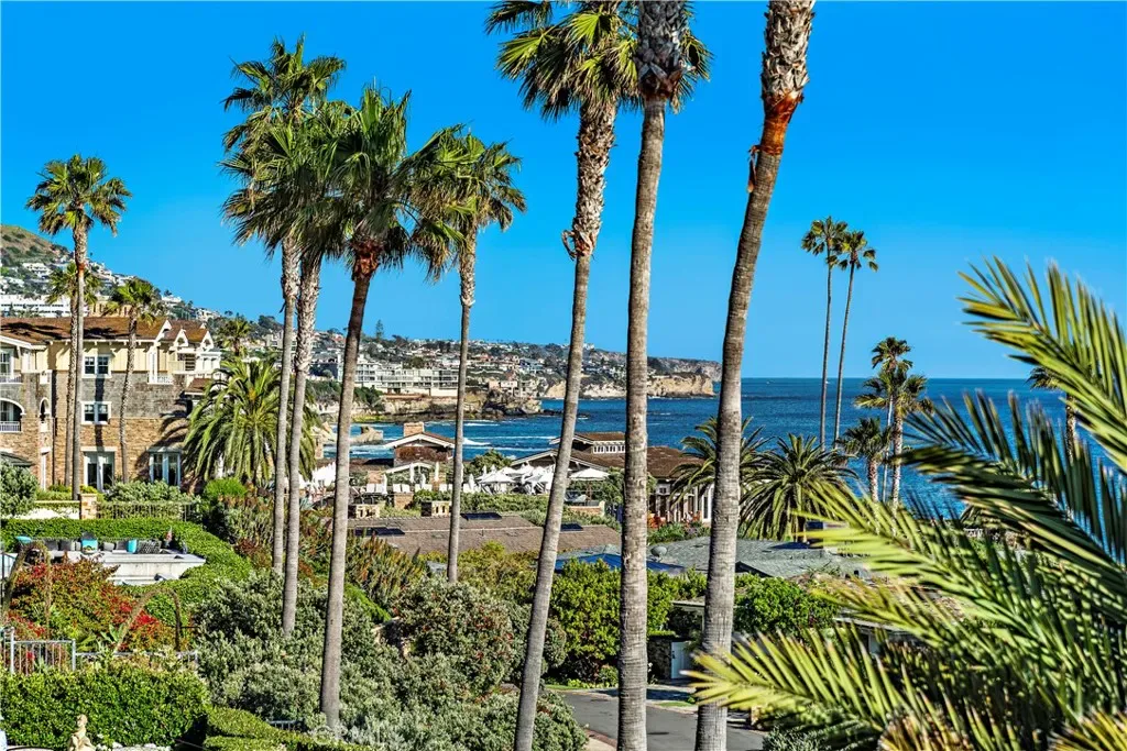 Situated in one of the best rows in Blue Lagoon, the villa boasts breathtaking views of the ocean and Treasure Island Park to the south, as well as coastal views of Catalina Island and North Laguna lights to the north. The living room includes a fireplace, a built-in entertainment bar, and stainless-steel kitchen appliances. Auto window shades and a new AC system provide convenience and comfort.