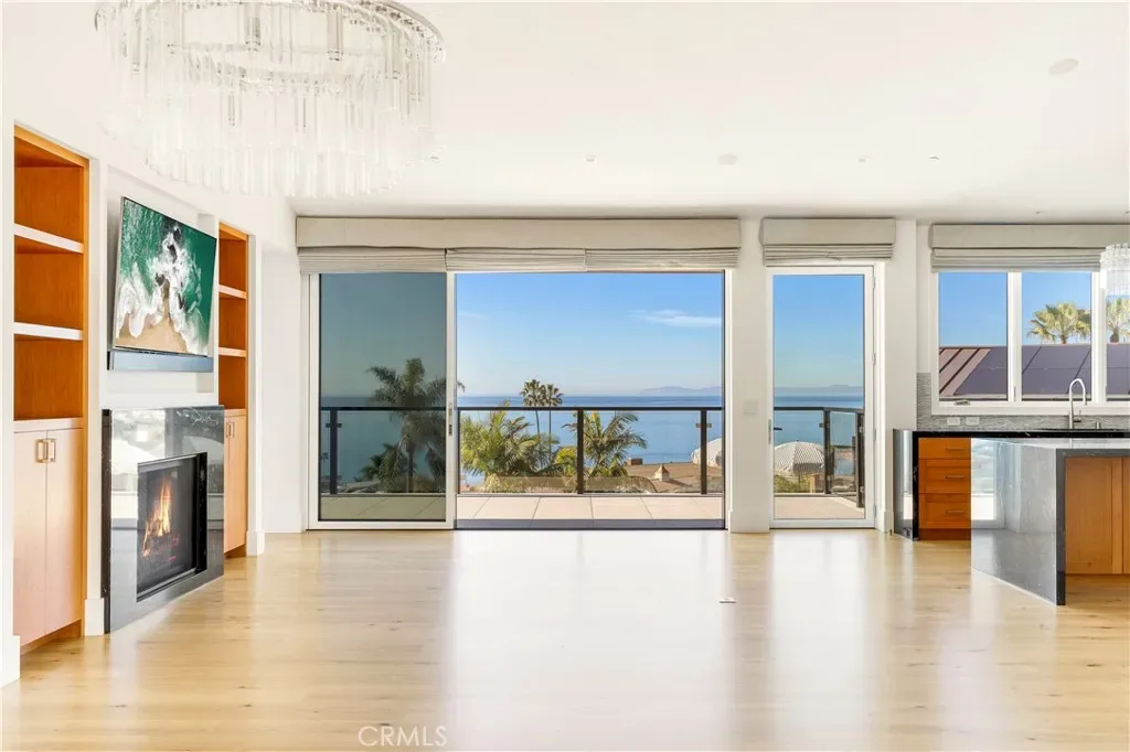Walls of Fleetwood floor-to-ceiling glass open the great room to a spacious ocean-view deck, creating the perfect setting for entertaining, dining, and enjoying Emerald Bay’s iconic Catalina sunsets and coastal breezes.