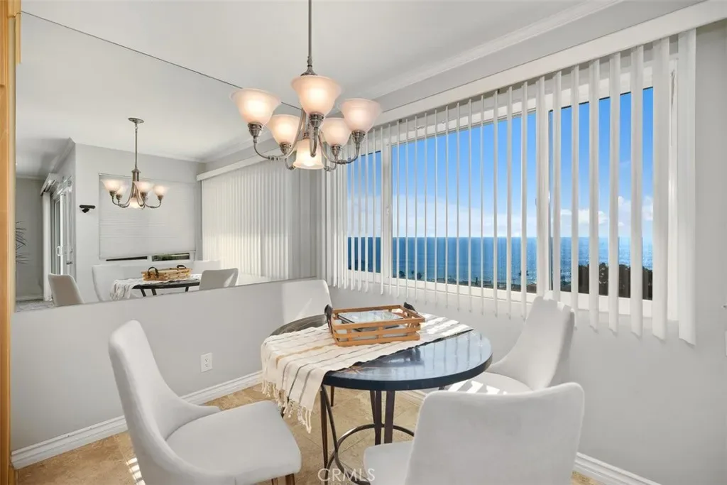 TURNKEY, fully furnished and equipped in the Montage Resort area. Experience amazing, forever unobstructed, 180-degree ocean, whitewater, and Catalina Island views from this single level, 2BD/1BA ground floor condo on a wide, scenic blufftop. A one car garage with storage is included, and street parking is available for additional cars. Garage is accessible by a pathway to the condo that has only three stair steps. Watch the shimmering ocean and captivating Catalina Island sunsets, from the private ground level lanai / front patio, where you can dine al fresco while enjoying the ocean breeze. Bring your binoculars and you might see whales just yards beyond the shoreline! Step inside to find a seamless blend of light and bright, indoor-outdoor living with an open concept kitchen, dining area, and living room, all with ocean views. Fully equipped with cookware, glassware, plates, flatware, cutlery, linen and towels. Well appointed with modern and beach themed decor, the space gives a relaxing feeling of a resort along with the community’s private, heated swimming pool, lounge chairs, and cabana overlooking Aliso Creek Beach. The spacious, primary bedroom features a king size bed and has its own fenced private back patio and separate entry. The secondary bedroom also has a king size bed. The large bathroom features dual sink vanities, shower-in-tub combination with bench, and glass enclosure. Enjoy the simple life with a convenient lifestyle at a gem of a beach town. Take a short stroll, within minutes to 5-diamond world class Montage Resort with signature restaurants, Treasure Island Park with its coves and white sand beaches, and Victoria Beach with its landmark tower. Just down the street behind the swimming pool, you’ll find pickleball and a shopping center with a top restaurant choices for your palate. The Ranch’s 9-hole golf course and Harvest Restaurant, downtown Laguna Beach art galleries, shops, restaurants, art festivals, and Laguna Playhouse are within minutes by car or trolley. Minimum 30 days short term rental. Also available May through August at various monthly rates.