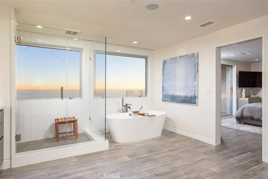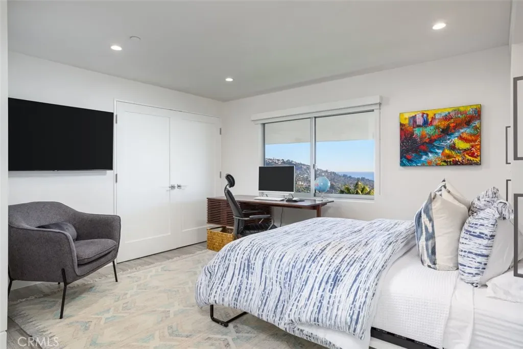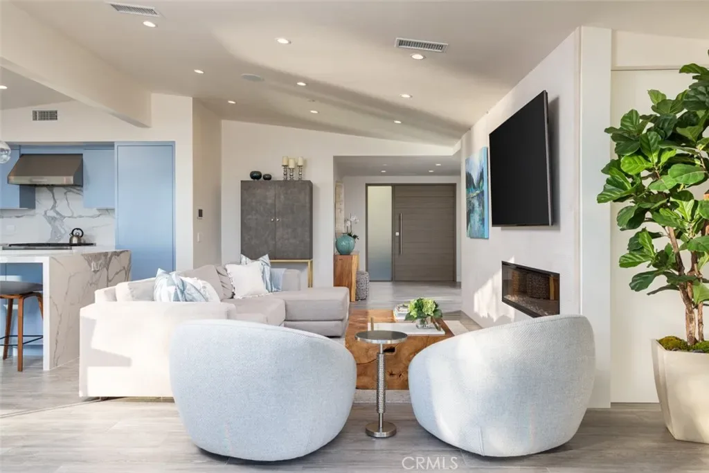 Designed by acclaimed architect Chris Light, and rebuilt from the ground up in 2021, this pristine contemporary home offers some of the most exceptional views that Laguna Beach has to offer. Panoramic coastline, Catalina, sunset and sparkling city light views greet entrants upon opening the front door. The kitchen features custom Italian cabinetry, an oversized island, a professional-grade appliance suite, and is open to the living and dining areas which offer sit-down ocean views. A pair of large pocketing Fleetwood sliders open to the expansive deck to capture multiple breathtaking vantage points. The main-floor primary suite with ocean views features a large soaking tub, separate shower, walk-in closet, and balcony access. Downstairs features an additional living space and full kitchen, making entertaining a breeze and offering flexibility. Three additional generously-sized bedrooms, including one on the main floor, and three bathrooms complete the home. With custom design accents, thoughtful lighting, smooth coat Venetian plaster walls, imported tiles & cabinetry, seamless glass railings, as well as full smart home integration with lighting and music, RO water system, and automatic window shades, this home is not just beautiful; it’s perfect. Located on a quiet cul-de-sac, minutes from the world renowned restaurants and beautiful beaches of Laguna Beach, and just a short drive to all Orange County has to offer.