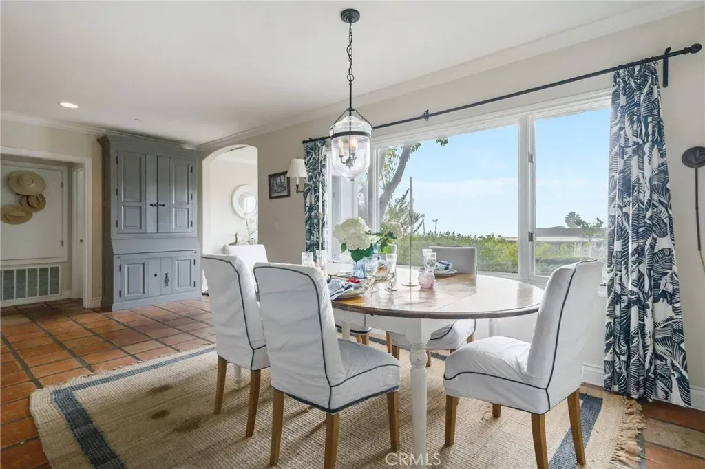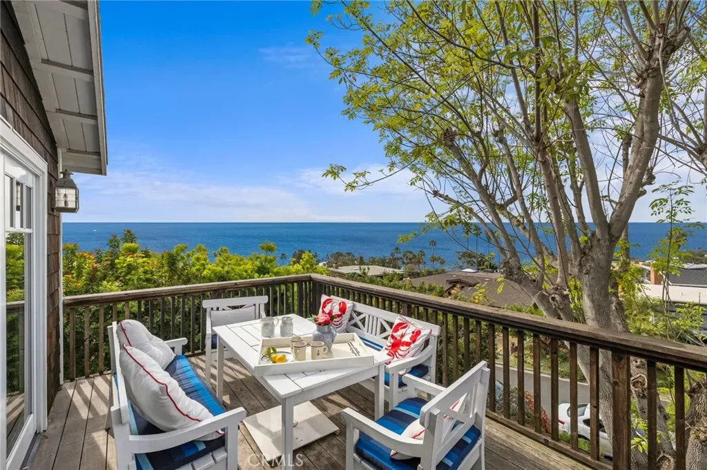 Experience breathtaking panoramic views of the ocean, Catalina Island, and stunning sunsets from this exquisitely furnished coastal retreat. Nestled in the “Ocean View” custom neighborhood steps from renowned Montage Resort and “Treasure Island’ beach, this meticulously updated Nantucket style home represents the perfect example of a luxurious beach-chic Southern California lifestyle. The home’s Chef-inspired Swedish kitchen is a culinary masterpiece, featuring custom cabinetry by Kvänum, a La Cornue range, and top-of-the-line appliances. The formal dining room, complete with a cozy fireplace and views of the ocean and garden, set the stage for intimate gatherings or elegant entertaining. On the main level, you’ll find two beautifully appointed bedrooms and bathrooms, each offering queen beds and serene charm. A versatile tropical-inspired den/media room, which can also serve as a guest room, opens to a picturesque back terrace surrounded by lush gardens. Upstairs, the expansive Great Room boasts high-beamed ceilings and sweeping ocean vistas. Step onto the spacious patio deck to enjoy alfresco dining, morning coffee, or evening cocktails while taking in the view of Catalina Island. Adjacent to the Great Room, a charming office/den and a cozy sitting area with a fireplace and custom built-in bar provide a perfect balance of work and relaxation. The luxurious primary suite is a true sanctuary, featuring a king-sized canopy bed, serene ocean views, and access to a private terrace overlooking the verdant backyard. Outdoors, the expansive back terrace is an entertainer’s dream, complete with a dining area illuminated by enchanting string lights, a fire pit, and a BBQ for alfresco gatherings. The large, enclosed backyard features a private ocean view deck perched above the lush lawn and beautifully manicured gardens, offering a private oasis for relaxation and play. Located just a short stroll from Treasure Island Plaza, world-class dining, the Montage Resort, and pristine beaches, this home also enjoys close proximity to Lang Park and a free trolley stop for effortless exploration of Laguna Beach.