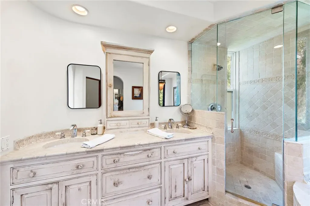 Air Conditioned Beautiful spacious indoor/ outdoor home on a special corner lot in a wonderful location. This homes curb appeal is simply the best! This is a Santa Barbara style home walking distance to trails, parks, beach, restaurants and shops. The great room as you enter features a dining room, living room with fireplace and doors that open to patio and back yard along with kitchen and family room with fireplace. There are two bedrooms and two and a half baths on the main level. Upstairs is a very large master suite that opens up to a private patio with ocean views The master features a walk in closet, spa bathroom with separate tub and a separate office/ gym. There is also another ensuite guest room on the upper level with a Romeo and Juliet balcony. The outdoor space of this home is nothing less than breathtaking! If you are looking for a long term unfurnished rental then you have found the right home! Wonderful neighborhood with plenty of outdoor space to enjoy!