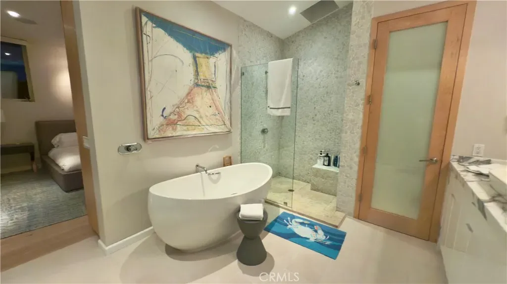 Panoramic Catalina Island views from this turn-key, SINGLE-LEVEL Contemporary-style Vacation Rental across the street from secluded Table Rock Beach. This stunning architecturally significant home has walls of windows that pocket in and open to expansive Ocean Views from almost every room. Affording true indoor/outdoor living to take in the sounds of waves crashing just steps away and the private beach gate allows access to the sand. The wrap-around deck offers an elevated view of the Coastline below with comfortable lounge chairs provided to enjoy the cool ocean breezes. This home is fully remodeled, bright, and airy with high ceilings and is furnished/equipped with everything you need for the perfect beach escape! Prepare meals in your Chef’s quality kitchen with wrap-around granite counters and panoramic ocean views. Dine overlooking Catalina Island, or relax in the open-concept Living area surrounded by forever views and colorful contemporary art. Recently updated Media Center with a large, flat screen TV. The primary suite has a luxurious ensuite bathroom with an oversized walk-in shower and a soaking tub. The Second bedroom has custom sliding privacy doors that enclose to convert into a guest room with a built-in Murphy bed – or leave this versatile space partially completely open to enjoy an inspiring ocean view office area. The convenient laundry room has a stackable washer/dryer. Parking for two cars in the driveway and 3-hour (or overnight) guest parking is just a few houses away. The charming South Laguna Village area shops and restaurants are just steps away (Coyote Grill, Ahba, Neopolitan Italian/Pizza, South Swell Donuts, etc.) Access to the Laguna Beach Free Trolley is right at the corner, Ben Brown’s Golf Course, The Ranch Resort, and Montage Resort & Spa are within walking distance, and Downtown Village Shops, Restaurants, Galleries & Festivals are just 5 minutes away! Enjoy this Laguna Beach gem – inquire about available dates.
