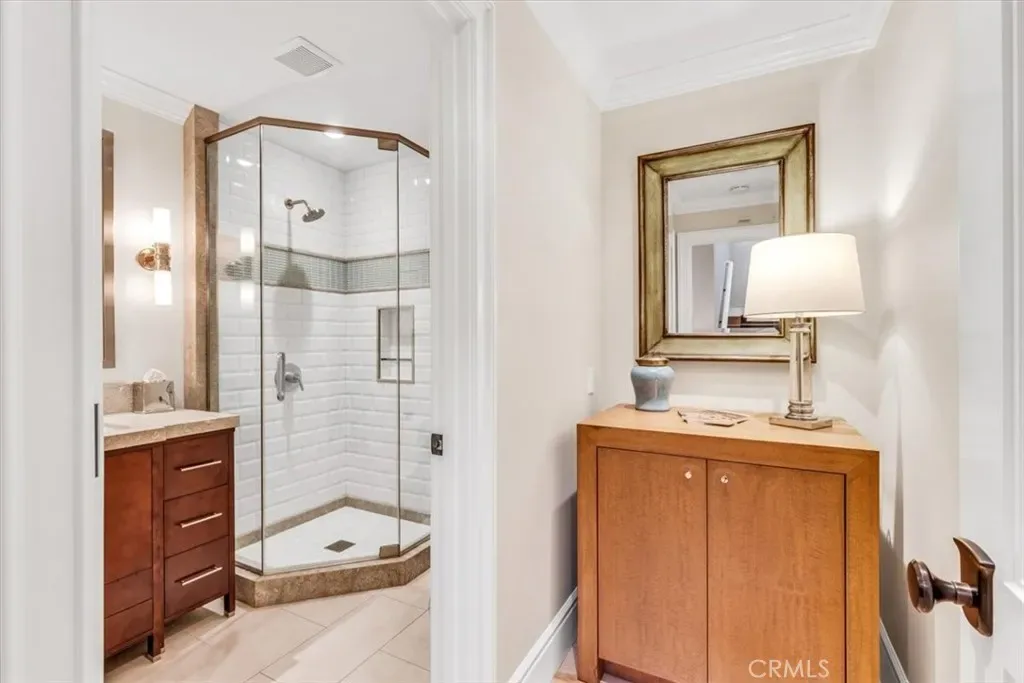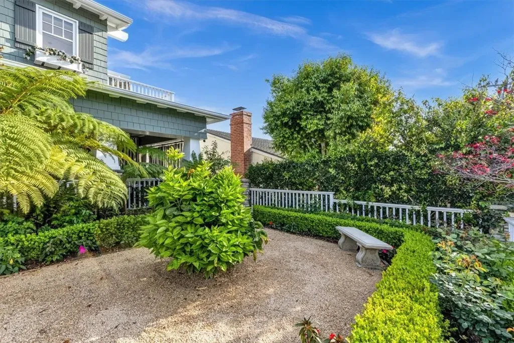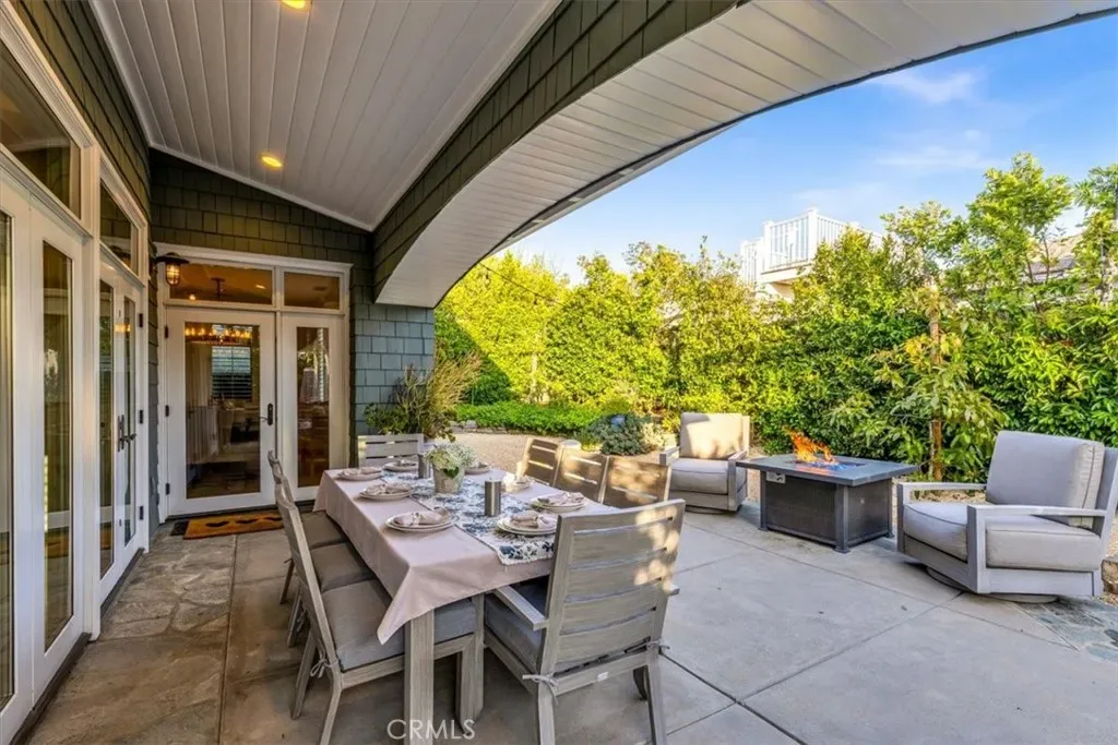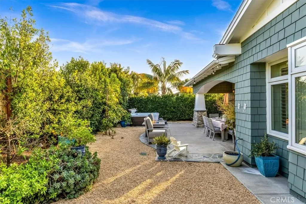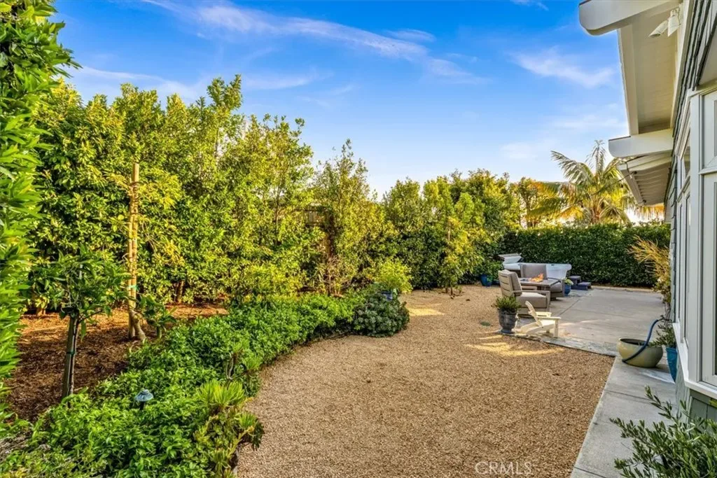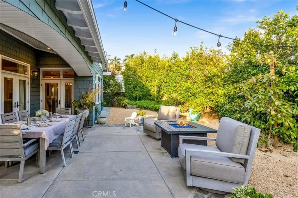 The backyard is a curated sanctuary featuring mature citrus and avocado trees, a fire table, bistro lighting, and a premium gas grill. Relax on the front porch sofa or enjoy ocean views from the primary suite’s private balcony.