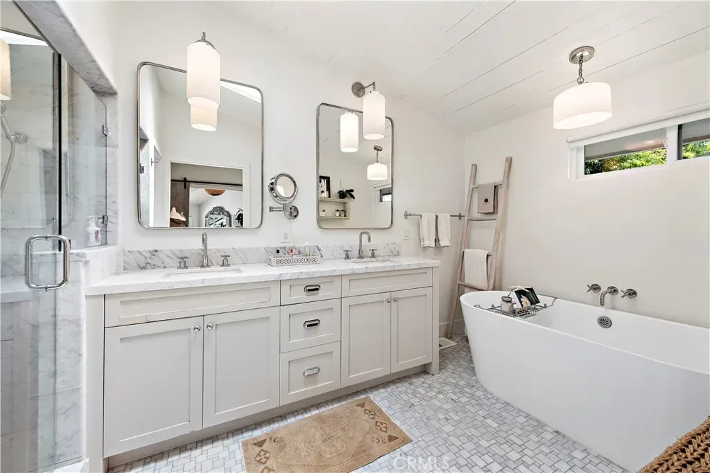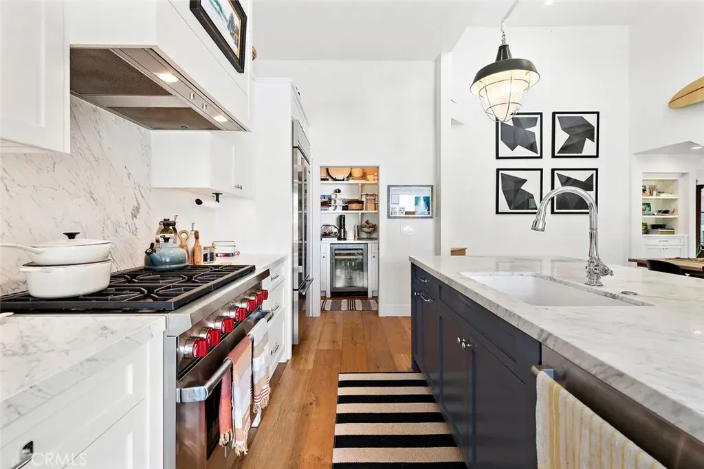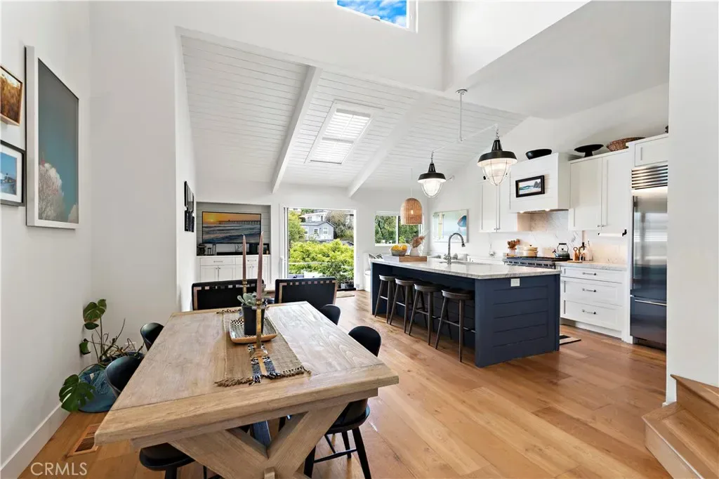 Experience Laguna Beach living at its finest in this beautifully furnished custom beach home, ideally located in the heart of the Village. Thoughtfully reimagined and impeccably appointed, this exceptional 4 bedroom, 3 bathroom residence offers approximately 2,600 square feet of refined coastal living, blending timeless charm with modern luxury. The light-filled interior features rich wood flooring, designer tile, high-end fixtures, and elegant coastal-inspired lighting throughout. The spacious primary suite serves as a private retreat, complete with a luxurious soaking tub, separate walk-in shower, generous walk-in closet, and adjoining sitting area. The open-concept kitchen is designed for both everyday living and entertaining, featuring a large center island, custom banquette seating, butler’s pantry, and top-of-the-line appliances. The kitchen flows seamlessly into the dining and family rooms, as well as the outdoor BBQ and seating area, creating an ideal indoor-outdoor living experience. The inviting living room showcases soaring ceilings, abundant natural light, and a romantic fireplace. Additional features include a dedicated laundry room with built-in office space and substantial storage.