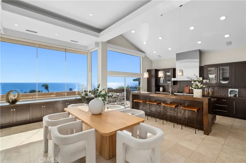 The gourmet kitchen is thoughtfully appointed with high-end Viking appliances, catering to both casual meals and elevated culinary experiences. Generous living spaces, a two-car attached garage, and the home’s elevated vantage point combine to deliver both functionality and breathtaking coastal ambiance.