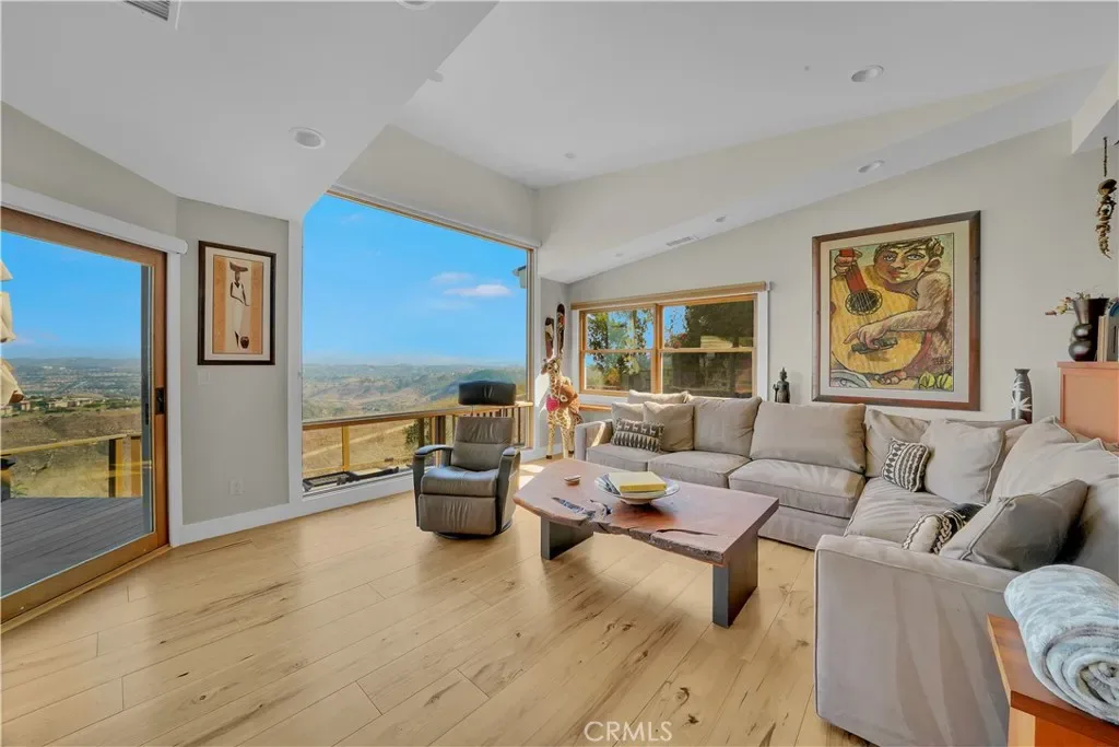 Discover this beautifully remodeled single-level home, perfectly positioned on one of the most desirable and quiet cul-de-sacs in the coveted Top of the World neighborhood. From its elevated perch, enjoy sweeping panoramic views spanning the Saddleback Valley to San Diego County, with a touch of ocean in the distance—the sparkling evening lights are truly breathtaking. The residence offers 3 bedrooms, an office with a closet (which could be a 4th bedroom) and three bathrooms. An airy, open floor plan with soaring ceilings creates a sense of volume and flow, anchored by a gourmet chef’s kitchen with LG and Wolf appliances, a spacious center island, and a built-in breakfast bar. Rich old-growth Hickory wood floors and custom Walnut cabinetry are complemented by thoughtfully placed skylights, filling the home with warmth and natural light. Outdoor living is effortless, with expansive deck space designed for entertaining and relaxation—complete with a barbecue area, al fresco dining, and a private spa overlooking a pristine natural canyon and those stunning views. Additional highlights include a walk-in pantry, air conditioning, a dedicated laundry room, a beautifully appointed two-car garage with EV charging, and a solar system for efficiency. Close to award-winning schools and parks, this property embodies the best of the Laguna Beach lifestyle.