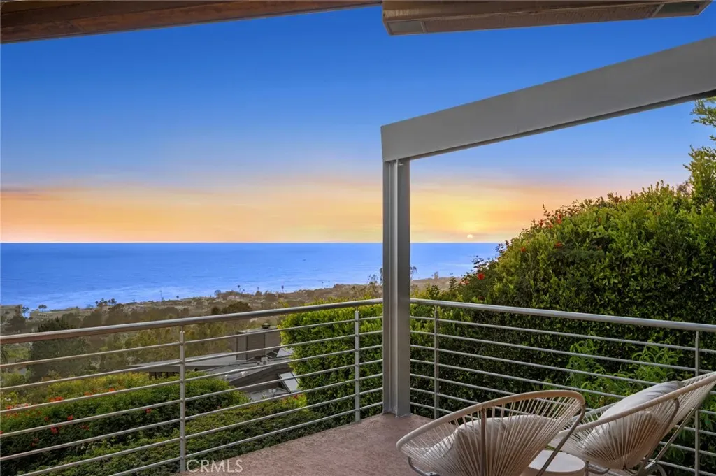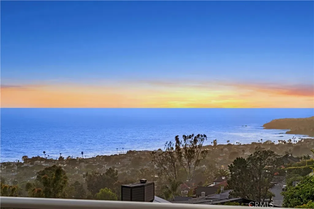 Welcome to a Mark Singer-designed sanctuary where modern sophistication meets coastal serenity. Perched in the highly sought-after enclave of Woods Cove, this one-of-a-kind 4-bedroom, 4,400 SF architectural marvel offers sweeping, unobstructed views of the Pacific Ocean, Catalina Island, and the pristine coastline of Laguna Beach. From the moment you step through the front door, you’re enveloped in floor-to-ceiling ocean vistas, soft coastal breezes, and refined finishes that evoke the indulgence of a five-star resort. Thoughtfully upgraded with newly installed and fully owned Tesla solar panels, the home offers cutting-edge energy efficiency without compromising luxury. The main level hosts a breathtaking primary suite with expansive walls of glass framing the endless seascape and twinkling city lights. The spa-inspired ensuite bath features heated floors, vaulted ceilings, and timeless elegance. A true chef’s kitchen awaits with quartzite countertops and backsplash, a large central island, and top-tier appliances including a Hestan range, Liebherr refrigerator, Cove dishwasher, and built-in two-drawer refrigerator. A spacious walk-in pantry adds convenience and style. Seamless indoor-outdoor living is at the heart of this home, with a tranquil water feature leading to a large entertaining deck—ideal for sunset dinners or lively gatherings under the stars. The mid-level offers a second living area for entertaining, complete with a built-in projector, expansive ocean-facing deck, and a climate-controlled 800-bottle wine cellar—perfect for movie nights or intimate tastings. Each secondary bedroom suite is a private retreat, featuring its own terrace, entrance, and coastal views. One room also doubles as a creative studio or home office. A distinctive staircase adds architectural flair, capturing sunlight and ocean sparkle by day and golden sunsets by night. Practical luxury continues with a generous three-car garage and a full driveway, ideal for guests and car collectors. And with fully owned Tesla solar, you’ll enjoy sustainable living with reduced energy costs—without sacrificing comfort. This is more than a home; it’s a lifestyle—a rare opportunity to live above the waves in timeless style, just moments from world-class beaches, restaurants, boutique shopping, and the vibrant Laguna Beach art scene.