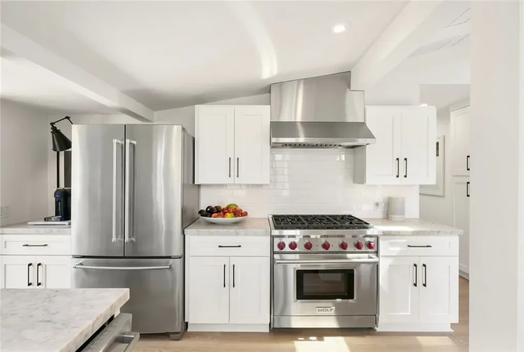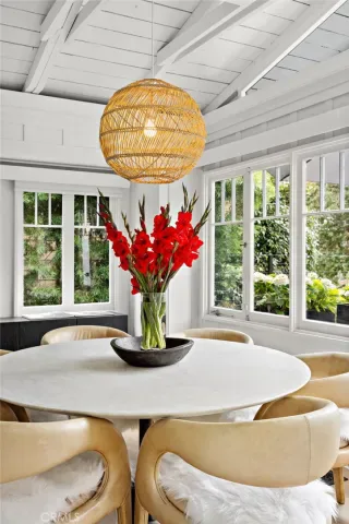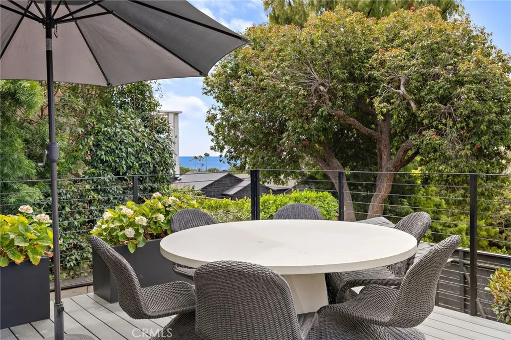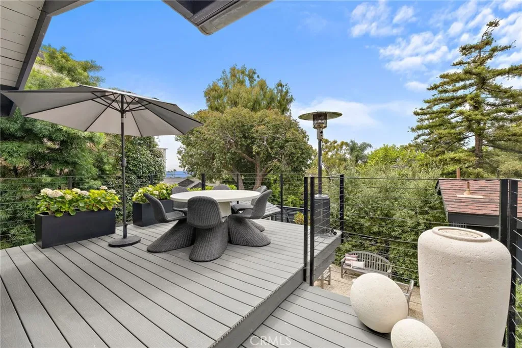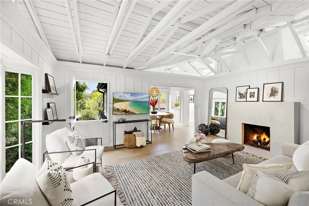 Stunningly Remodeled and Beautifully Furnished Coastal Retreat in the Heart of Laguna Beach. Experience the epitome of coastal living in this exquisitely updated 1926 cottage, ideally situated in Laguna Beach’s coveted Woods Cove neighborhood—just moments from the ocean and the beloved Bluebird Canyon Park. This charming and historic home offers a serene escape, perfectly blending timeless character with luxurious modern updates. Set on a picturesque corner lot, this fully furnished residence features three spacious bedrooms, each with its own en suite bathroom, plus an additional half bath for guests—providing both comfort and privacy for all. The primary suite showcases a Tulum-inspired spa bathroom, and a luxurious soaking tub highlighted by a striking 10-foot skylight that fills the space with natural light and tranquil energy. Throughout the home, refined design details abound, including Carrera marble countertops, custom window treatments, high-end heated bedding, recessed lighting, automated blinds, ceiling fans, and vaulted ceilings adorned with skylights and transom windows. The inviting living room—centered around a contemporary fireplace—flows effortlessly into both front and rear outdoor living spaces, the indoor and outdoor dining areas, and a light-filled chef’s kitchen with an ocean view deck. The modern bathrooms feature Taj Mahal quartzite or marble counters, custom sinks, heated towel racks, all creating a harmonious indoor-outdoor flow that enhances the home’s peaceful ambiance. Outside, enjoy mature shade trees, lush landscaping, multiple covered porches, an ocean view deck, a built-in sun bench, a luxury ping-pong table, and multiple stylish dining areas with a built-in BBQ—perfect for entertaining or unwinding under the stars. Classic Dutch doors welcome guests into a bright and airy environment, defined by white-paneled walls, fresh coastal decor, and an undeniable sense of tranquility. This exceptional home is the perfect setting for a dream vacation—offering timeless charm, modern sophistication, and an ideal location to enjoy the very best of Laguna Beach.