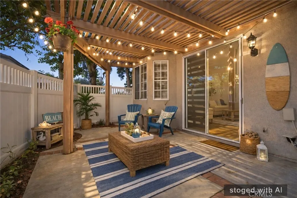 Enjoy seamless indoor-outdoor living with a spacious private covered patio, accessible from the living room—perfect for relaxing or entertaining. A private gate offers easy access to the front of the home. The main level also features a convenient guest powder room.