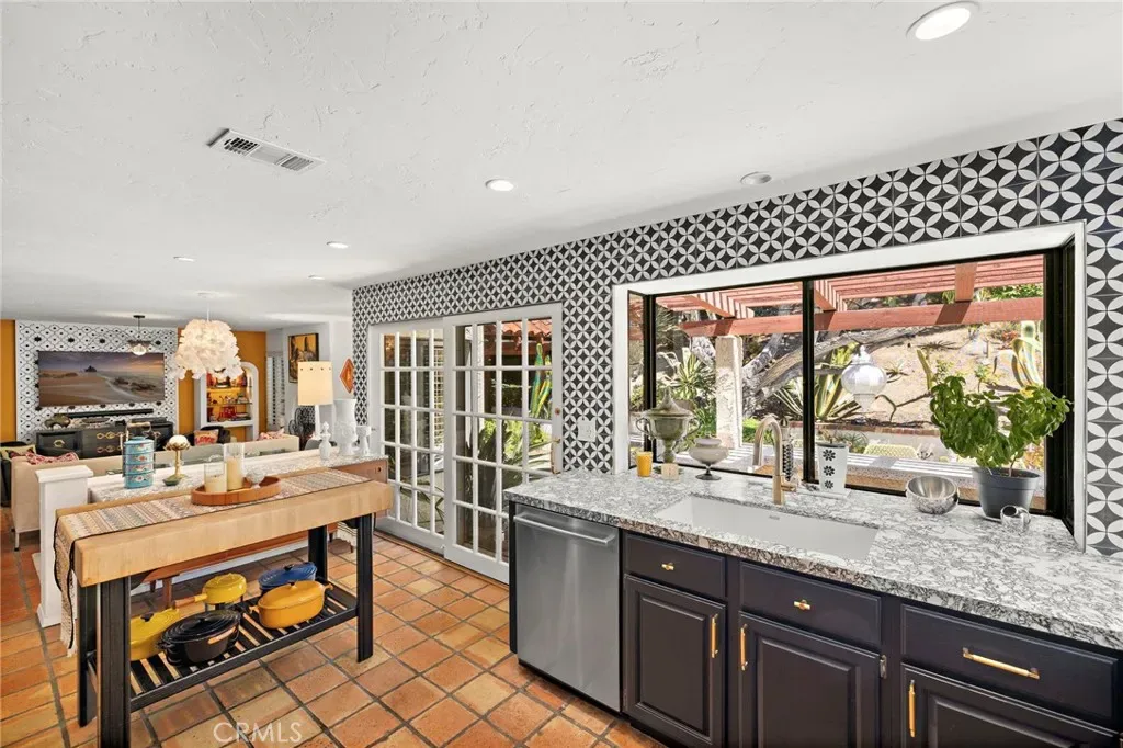 The backyard is nothing short of extraordinary — an elevated oasis designed for tranquility and celebration alike. With layered landscaping, privacy, and panoramic hillside views, the outdoor setting evokes the feeling of a boutique desert resort while remaining moments from the coast. Whether hosting sunset gatherings or enjoying a quiet morning coffee, this space delivers serenity with sophistication.