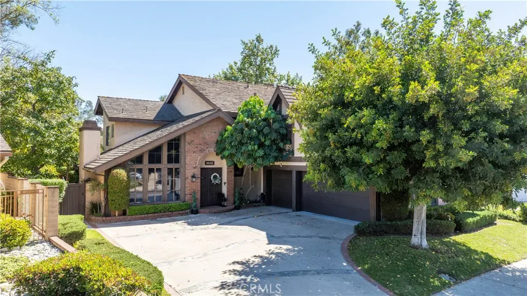 Welcome to this beautifully upgraded home in the desirable Stratford Ridge community of Laguna Hills. This spacious floor plan offers 4 bedrooms and 3 bathrooms, including a main-level bedroom and full bath, plus a loft and a spacious office. A foyer with high ceilings opens to the living room with fireplace and adjacent dining area overlooking the private backyard. The family room features a second fireplace and French doors, creating a seamless indoor-outdoor. The fully upgraded kitchen showcases updated cabinetry, a center island, new countertops, modern lighting, and upgraded appliances. A bright breakfast area with French doors opens to an outdoor dining space. Upstairs, the primary suite offers a private retreat with custom built-ins, a remodeled bathroom, and access to a large balcony with backyard views. Two additional bedrooms, along with a loft and spacious office with custom built-ins. Recent improvements include new lighting fixtures, upgraded flooring throughout, and an open-concept reconfiguration of the main living area. Additional updates include a renovated downstairs bathroom. The private backyard features mature landscaping, fruit trees, and hardscape with brick and slate accents, plus built-in planter seating. Additional highlights include a 3-car garage, oversized driveway, and indoor laundry. Conveniently located near parks, shopping, dining, and major transportation routes