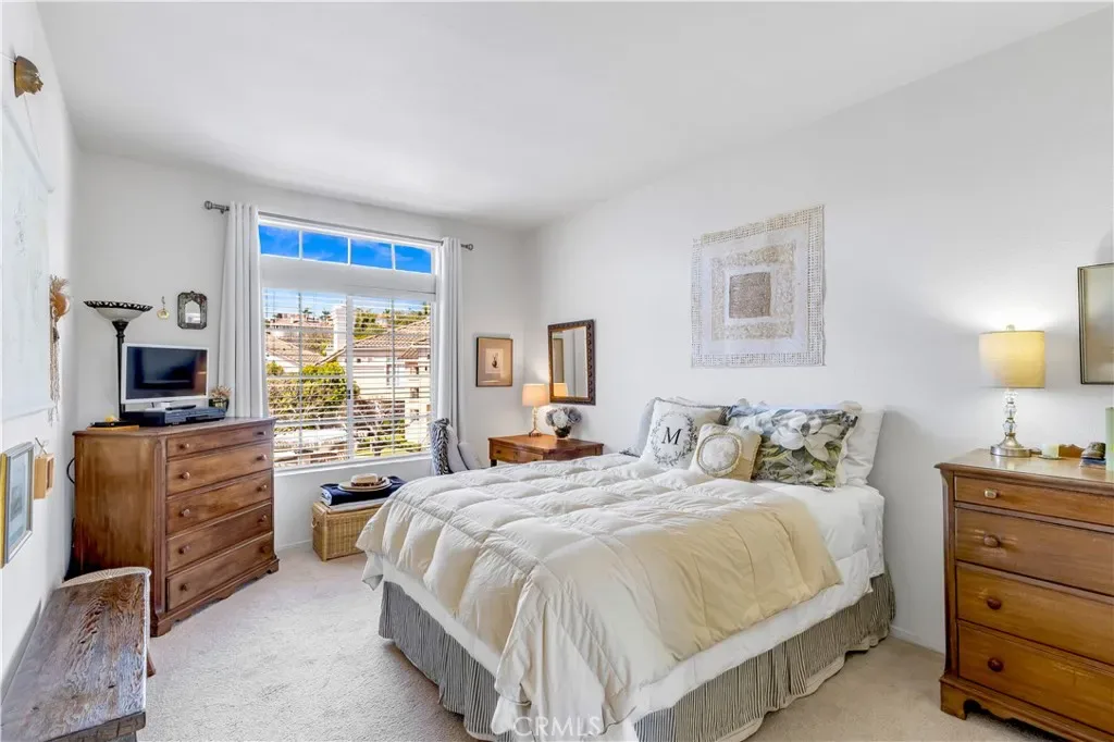 Nestled within the “Breakers of Bear Brand” community, this home is less than 3 miles from Orange County’s premier beaches, Strands Beach and Salt Creek Beach. Both locations are ideal for picnics, relaxation, or attending music concerts with breathtaking views of the Pacific Ocean and Catalina sunsets. Entering the home, you are greeted by a garment closet and direct access to the oversized 1-car garage. As you access the main living area, you find a contemporary kitchen with white tile counters, abundant cupboard space, recessed lighting, and a sparkling black tile floor. A window above the sink provides a pleasant view of the balcony. The dining area greets your entrance to the large and comfy living room that provides access to a walkout corner balcony. This balcony serves as an ideal private retreat to unwind after a busy day, enjoying reading today’s newspaper, a favorite book or listening to your music. The carriage model home features two spacious bedrooms that offer both privacy and an abundance of natural sunlight. The home has been repiped with “PEX” giving you confidence that plumbing issues are rare. The Breakers community provides a first class, resort style pool and spa just a short walk away. The gated pool and spa heated passively. A second spa is also a short walk away. The community is adorned by many trees, seemingly endless of common areas for visiting with neighbors or walking your pets. Residents enjoy key access to the Ocean Ranch II retail center, that features Trader Joe’s, Cinepolis, Bodega Angelina and several casual dining venues, boutique shops, and financial institutions. For guests, the home is less than two miles from the Waldorf Astoria resort hotel and just a mile further from the Ritz Carlton. key to the pool also provides you gate access to the Ocean Ranch II retail center featuring Trader Joes, Cinepolis, Bodega Angelina, several casual dining venues and boutique shops. For out-of-town guests, the home is located less than 2-miles from the Waldorf Astoria resort hotel or the Ritz Carlton less than mile further. The ongoing refreshing of the city of Dana Point and Dana Point Harbor revitalization ensures your Breakers of Bear Brand community remains a GO TO” destination. With its exceptional location, modern features, and access to resort-style amenities, this home offers a lifestyle that many only dream of experiencing. Now, you can make this beautiful carriage model home your own!