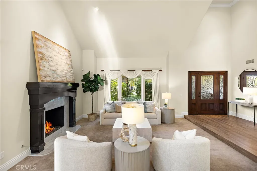 The newly staged interiors highlight the seamless flow of the home, from the striking porcelain tile and plush carpet underfoot to the sophisticated formal living and dining spaces. The heart of the home—a fully renovated chef’s kitchen—is now showcased in all its glory, featuring stainless steel appliances, custom cabinetry, and ample counter space that’s as functional as it is stunning. Picture hosting gatherings here, with the adjacent spaces perfectly styled to inspire connection and conversation.