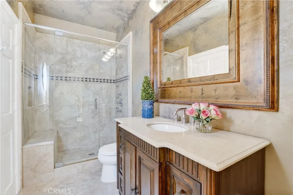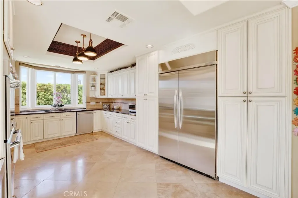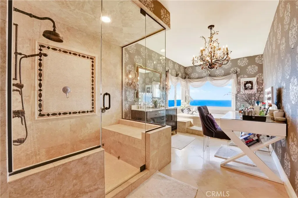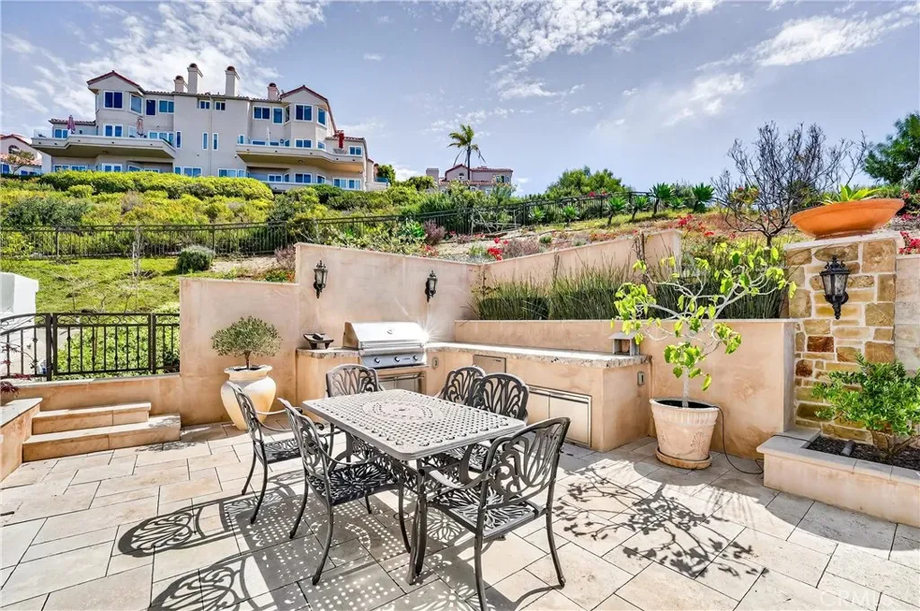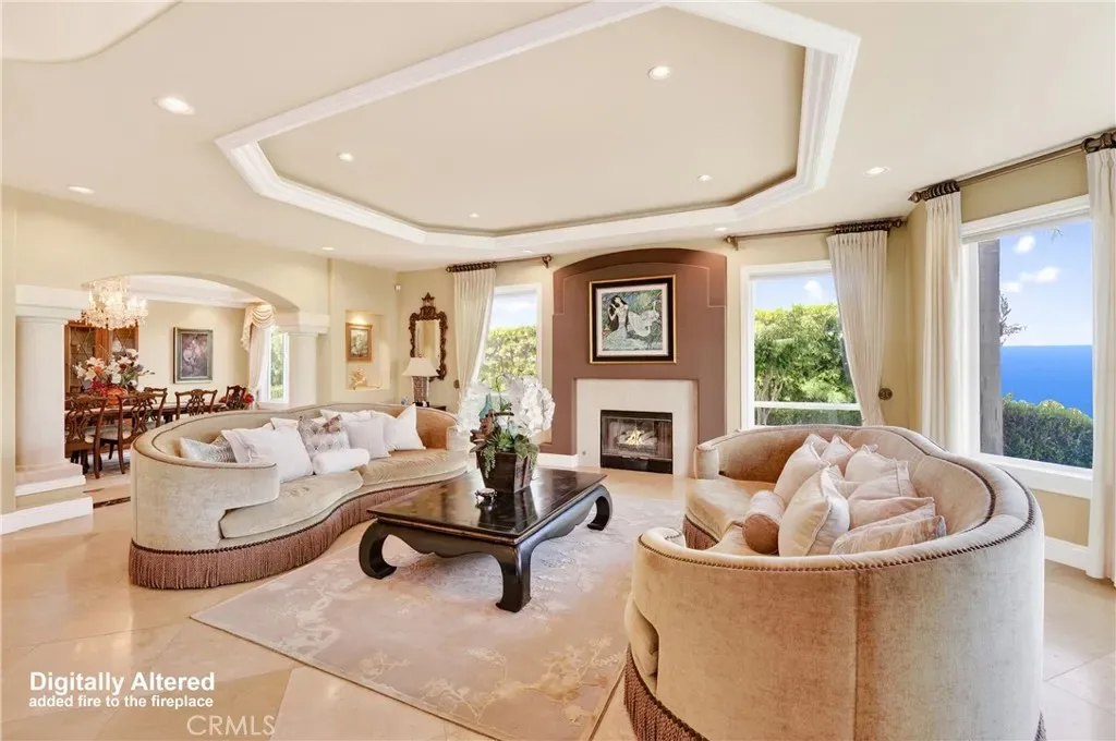 Set behind the gates of Laguna Sur, this remarkable estate showcases sweeping ocean, Catalina Island, and coastline views extending toward Palos Verdes. The residence offers a thoughtfully designed two-level floor plan with generous living spaces and an easy, open flow ideal for both everyday living and entertaining. The home makes a striking first impression with a custom entry featuring 10-foot-tall custom wrought iron doors with a 6-foot wrought iron window arching above. These doors open to a dramatic foyer with soaring ceilings and a distinctive circular marble design. Architectural elements throughout include graceful archways, statement columns, and expansive windows that highlight the views. Designer lighting and a sophisticated combination of wood and travertine flooring complete the space. A custom wrought iron staircase adds to the home’s refined character. The layout includes five bedrooms and four and a half bathrooms, along with a formal dining room and an inviting family room complete with a 15-foot built-in showcase-bookcase. Natural light fills the interior, enhancing the sense of space and drawing attention to the stunning coastal scenery. Upstairs, a versatile loft overlooks the main entry area below and captures beautiful ocean views. It is ideal for a lounge, office, or media space. Thoughtful enhancements elevate the home throughout, including an expansive backyard deck designed for outdoor entertainment and relaxation. The kitchen has been beautifully redone with updated finishes and appliances, creating a functional and stylish centerpiece. The primary suite has been upgraded with a redesigned closet and a refined bath retreat, offering a spa-inspired experience. Additional improvements include updated lighting throughout, refreshed fencing for added privacy, and an enhanced entryway that complements the home’s architectural appeal. A fully integrated solar system with 3 Tesla Powerwalls provides impressive efficiency and can power the entire home, including both air conditioning systems, off-grid. Located within the highly sought-after Laguna Sur community, this home presents a rare opportunity to enjoy coastal living with impressive views and refined, move-in-ready upgrades.