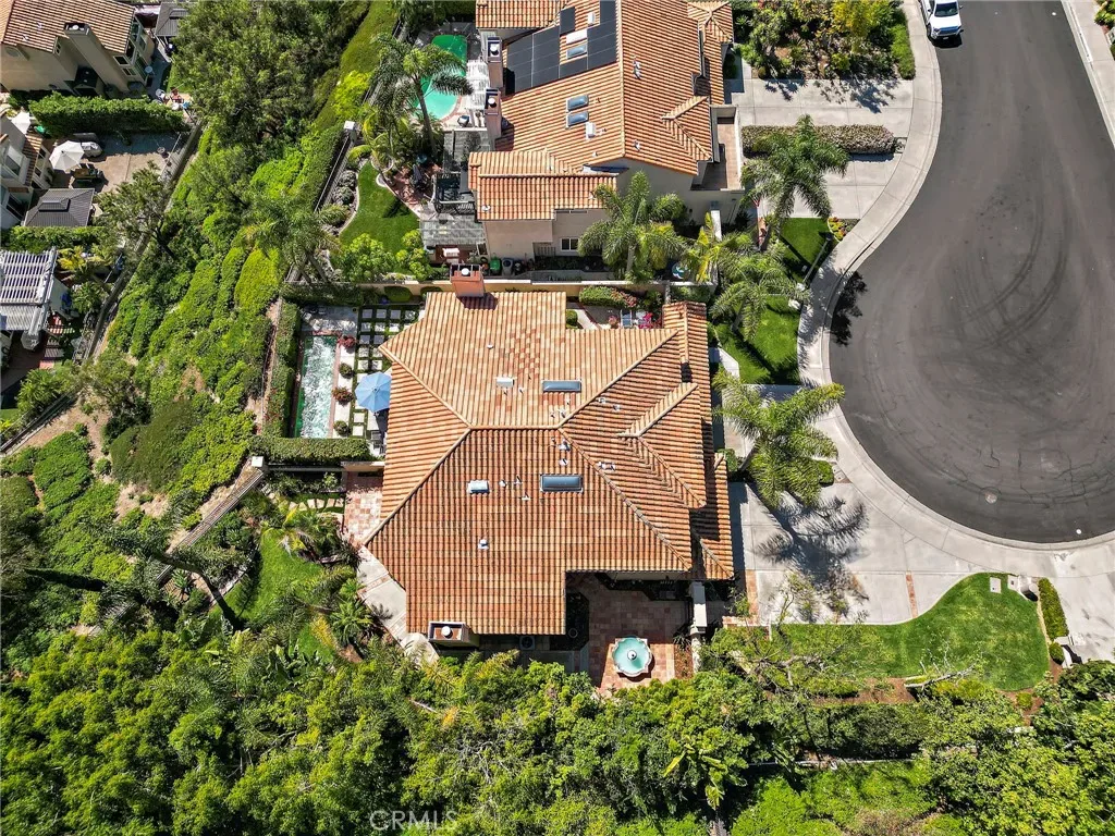 Perched in a premier hilltop location within the highly sought-after Marina Hills community, 30 Villamoura presents a rare opportunity to own the largest and most exclusive “Mediterranean Villa” model in the Monaco tract. Set on an expansive 7,800 square foot lot, this private end-unit residence sits at the end of a quiet cul-de-sac, offering exceptional privacy along with picturesque views of the surrounding hills, valley, and even a peek of the ocean. Spanning approximately 1,841 square feet, the home features 3 bedrooms, 2.5 bathrooms, and a versatile loft ideal for a home office, den, or easily convertible fourth bedroom. Thoughtfully upgraded throughout, the interior showcases durable travertine flooring, granite countertops, plantation shutters, tinted windows, designer paint, PEX plumbing, and a surround sound speaker system. The kitchen is equipped with new pro-grade stainless steel appliances, while the finished garage includes built-in storage solutions and access to a large semi-finished stand-up attic for additional space. Outdoor living is a true highlight, with a gated and private entry patio complete with a tranquil fountain, as well as an expansive wrap-around yard adorned with lush Mediterranean landscaping, mature shade trees, fruit trees, herbs, and manicured lawns creating a peaceful setting. The two-car garage plus the long triple-wide driveway provide ample parking. Residents enjoy access to the exceptional Marina Hills private club, featuring a competition-size pool and spa, six lighted tennis and pickleball courts, clubhouse, and recreation facilities, all adjacent to a 12-acre park with sports fields and courts. Ideally located just three miles from Salt Creek Beach and the Ritz-Carlton, with convenient bike path access, this home is also close to outstanding shopping and dining. With no Mello-Roos and a low HOA, this is coastal living at its finest!