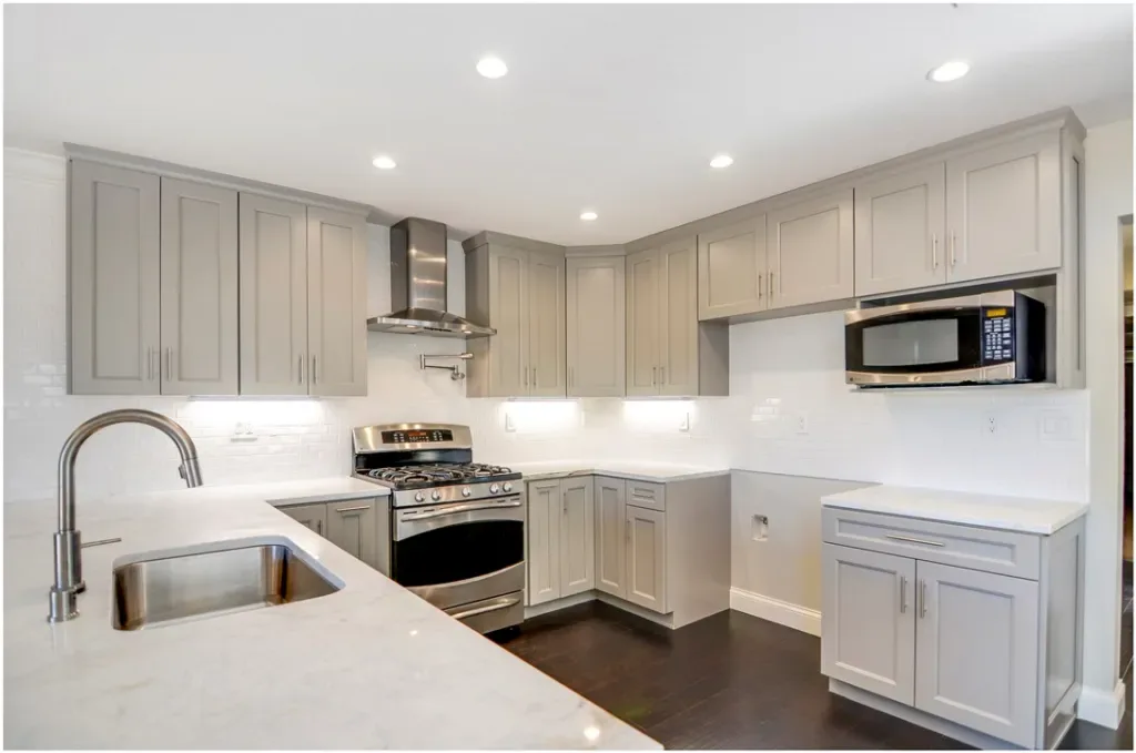 The open-concept gourmet kitchen is a standout, showcasing marble finishes, upgraded stainless steel appliances, generous counter space, and a convenient breakfast bar—perfect for both everyday living and entertaining.