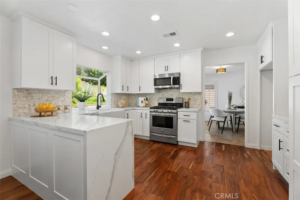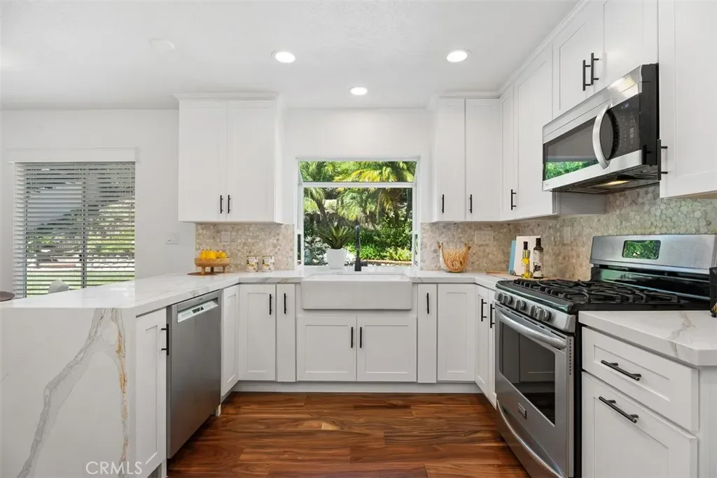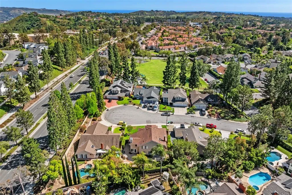 Welcome to this exquisitely renovated, move-in ready, two-story masterpiece, tucked on a quiet cul-de-sac in the coveted Somerset Point community of Laguna Niguel. This 5-bedroom home boasts soaring high vaulted ceilings that create an airy, open ambiance, with natural light flooding the spaces. The fully reimagined kitchen showcases elegant quartz countertops, custom cabinetry, stainless steel appliances, a bespoke backsplash, and a charming farmhouse sink—truly a chef’s dream. All bathrooms have been luxuriously transformed, offering spa-like serenity. Rich hardwood floors and plush new carpet flow throughout, enhancing the elegance of every room. The open floor plan and those grand ceilings ensure both beauty and comfort. Step outside to an inviting backyard with lush grass, an oversized spa, and a tranquil waterfall cascading into it—an idyllic setting for relaxation or entertaining. Just steps away, a nearby park offers playgrounds, trails, and open spaces, adding to the lifestyle appeal. In one of Laguna Niguel’s most desirable neighborhoods, this home blends elegance, convenience, and location—a rare, beautiful opportunity!
