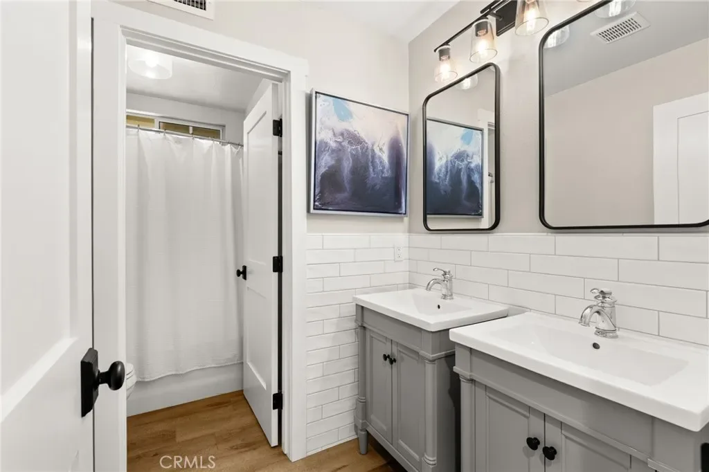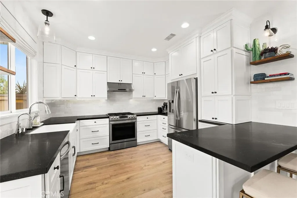 Welcome to 24572 Sunshine Drive, a meticulously curated Laguna Niguel home fully reimagined since 2020 and where every detail looks like it belongs in a design magazine. Behind the charming Dutch door entry you’ll find a seamless open layout anchored by an exposed brick fireplace, shiplap accent walls, and wide-plank LVP floors that flow throughout. A dedicated home office just off the entry features fully built-in cabinetry and maple slab shelving, perfect for today’s work-from-home lifestyle. The chef’s kitchen shines with white shaker cabinetry to the ceiling, honed natural stone counters, floating walnut shelves, a Delta Touch faucet, matching stainless appliances, and a dedicated under-sink reverse osmosis system with a separate Kohler drinking water spout. The connected family room opens to a custom banquette with a built-in Miele 3-zone, 90-bottle wine fridge, lit by Currey & Company. A Visual Comfort by Kelly Wearstler chandelier anchors the living room. Upstairs, the primary suite is its own retreat: soaring 10′ slanted ceilings, a spa bath with freestanding soaking tub, frameless glass shower, dual vanities, West Elm white oak medicine cabinets, and a walk-in closet that rivals a boutique. Hunter Douglas Palm Beach window coverings (shutters + woven shades) are featured throughout the home. This incredible home also delivers one of the best backyards in the neighborhood: herringbone pavers, natural gas fire pit, full outdoor kitchen with Louisiana Grills smoker, natural gas BBQ, Polk Audio outdoor speakers, brass Kichler landscape lighting, and open views you’ll never tire of. Every major system is done: owned 14-panel LG solar, PEX plumbing, dual HVAC, Culligan whole-house water softener, SimpliSafe security system with Nest cameras, and an epoxy garage with built-in cabinetry and overhead storage. Professionally landscaped grounds, low HOA, no Mello-Roos, and just minutes to Dana Point beaches, the Waldorf-Astoria, and the Ritz Carlton. This is the one.