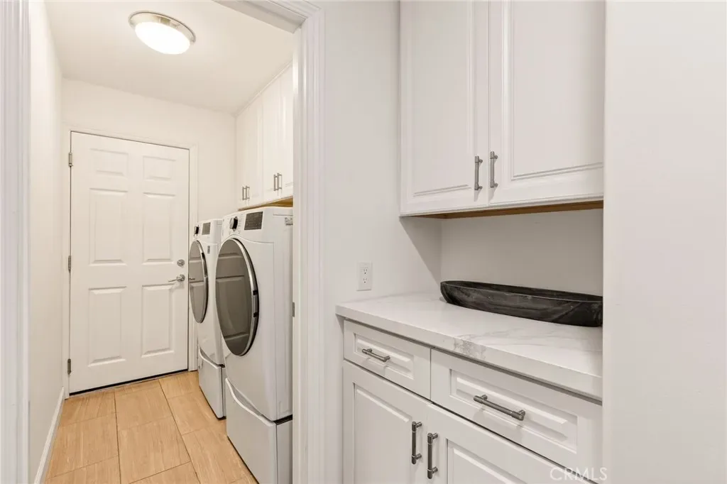 The private backyard is a true retreat—an entertainer’s dream complete with lush landscaping, resort-quality synthetic turf for year-round vibrancy, a built-in pool and spa, and generous space to relax and enjoy the Southern California sunshine. The enclosed, beautifully landscaped front yard provides an additional tranquil outdoor setting, perfect for morning coffee, evening unwinding or family gatherings.