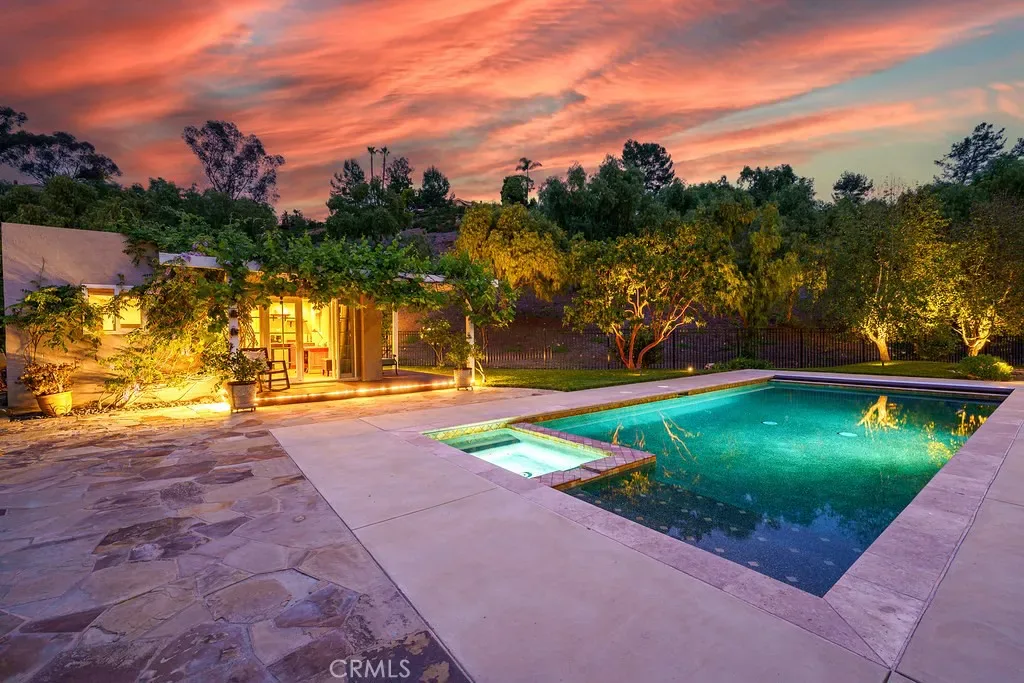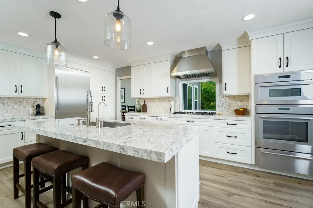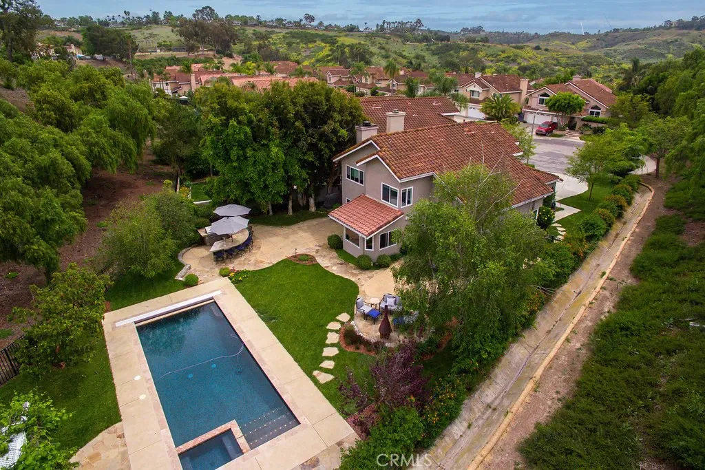 Tucked at the end of a quiet cul-de-sac, this is one of Laguna Niguel’s most exceptional and rarely available offerings, a fully remodeled, thoughtfully expanded estate positioned on an approximately 20,000 sq ft lot with just one neighboring home and sweeping natural hillside as your backdrop. Four bedrooms, three baths, a bonus room, PLUS a detached casita combine to create a compound-style retreat where privacy, luxury, and versatility coexist effortlessly. From the moment you enter, the quality of the renovation is unmistakable. The reimagined kitchen anchors the main living area with an expanded layout, a sun-drenched breakfast nook wrapped in windows, and an oversized island with seating all finished in crisp white shaker cabinetry, neutral quartz countertops, and a full Thermador suite including built-in refrigerator, 5-burner gas cooktop, wall oven, microwave/convection oven, warming drawer, and dishwasher. The adjacent family room flows naturally from this space, greatroom style, centered on a wood burning brick fireplace that adds warmth and character. Upstairs, the primary suite is a true sanctuary, featuring a spa-caliber bath with freestanding soaking tub, dual-head walk-in shower, and refined double vanity. Additional bedrooms share a separate wing with a versatile bonus room, ideal as a playroom, home office, or media space. Bathrooms throughout the home have been tastefully renovated with designer finishes. Outside, the property transcends the expected. A resort-scale backyard unfolds behind mature trees and natural hillside, lush, private, and seemingly boundless. The sleek pool & spa w/ electric cover anchor the space, while a fully outfitted outdoor kitchen by Lynx elevates every gathering: premium grill with side burners, multi-tap draft system, under-counter refrigeration, and granite bar top. This is a backyard built for landmark moments, from intimate evenings to large-scale entertaining. The detached spacious casita completes the picture, offering flexible square footage for guests, extended family, or a dedicated home office with true separation. Properties of this size, finish level, and seclusion are exceptionally rare in Laguna Niguel. This one is the kind you wait for. Close to George White Elementary, Chapparosa Park, trails to the beach (all tunneled), 4 miles to Dana Point Harbor and amazing beaches like Doheny and Salt Creek! Shopping and dining options are abundant and include only a 10 minute drive to Laguna Beach!