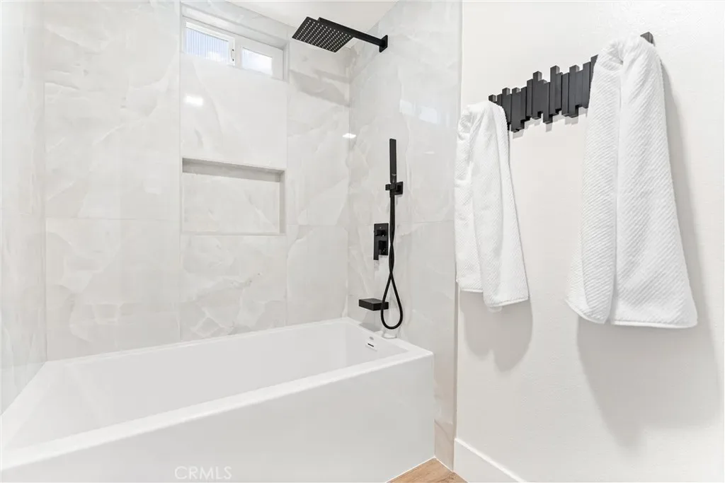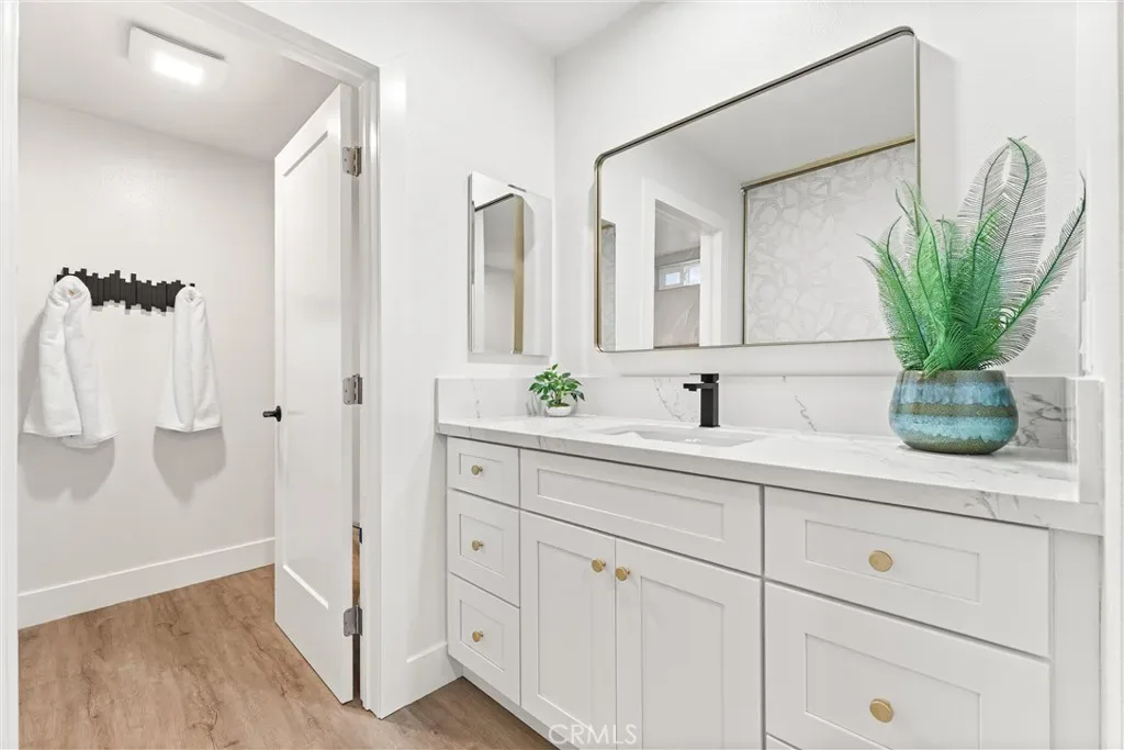 Experience luxury and comfort in this fully remodeled 2BD/2BA, 1,199 sq ft Garden Villa condo in the heart of Laguna Woods Village! Located in a Tri-level building with elevator access and subterranean parking, this single-level unit features a modern split-bedroom layout, each with its own new mini-split HVAC system. The designer kitchen impresses with quartz countertops, waterfall island, full quartz backsplash, custom soft-close shaker cabinets, under-cabinet and recessed lighting, and bespoke Samsung stainless appliances. Enjoy tranquil mountain and magnolia tree views from the private balcony or through brand-new Milgard windows and doors. Bathrooms include a spa-like walk-in shower and a luxurious Jacuzzi soaking tub—plus upgraded vanities and Toto toilets. Additional highlights: luxury vinyl plank flooring throughout, smooth ceilings, new Bradford White water heater, and fully permitted upgrades. Steps from Clubhouse 4 with world-class amenities. Resort-style 55+ living!