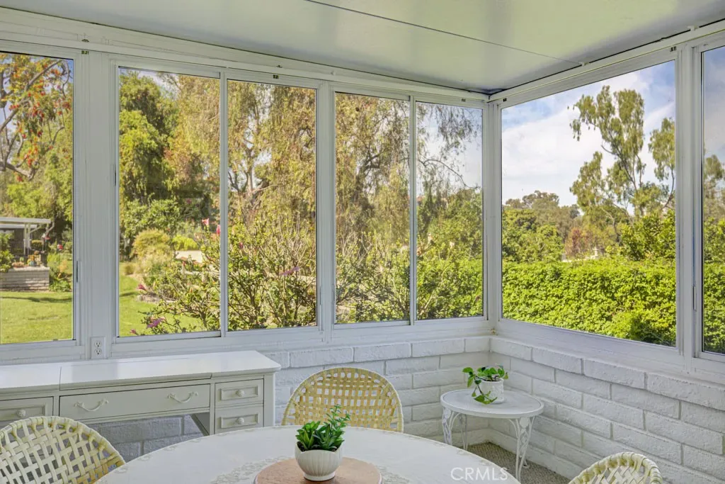 Welcome to 5479-A Paseo Del Lago – a three-bedroom, two-bath, single-level, end-unit CABRILLO residence in the Laguna Woods senior community. This property is situation near the end of a quiet cul-de-sac far from busy roads and noisy highways. The front courtyard has tile flooring and beautiful desert landscaping. The courtyard and adjacent covered side patio are the ideal location for outdoor entertaining, dining or relaxing. The huge living room has an added window to bring in additional daylight and easily accommodates large furnishings. The kitchen window looks out onto the front courtyard. The primary bedroom has an en suite bathroom with dual sinks and a shower. Either of the two guest bedrooms could serve as a home office, exercise area, sewing room or arts and crafts studio. The guest bathroom has a tub/shower combo. Dual-pane windows have been added throughout. The enormous enclosed rear patio which is accessible from both the living room and the primary bedroom offers a lovely panoramic view of the neighborhood and endless trees. The oversized two-car garage features epoxy flooring, washer/dryer hookups, utility sink and cabinet storage. The driveway easily accommodates two additional vehicles plus there is ample guest parking available in the cul-de-sac. This residence offers the perfect opportunity for a new owner to upgrade to their personal taste. Do not miss!