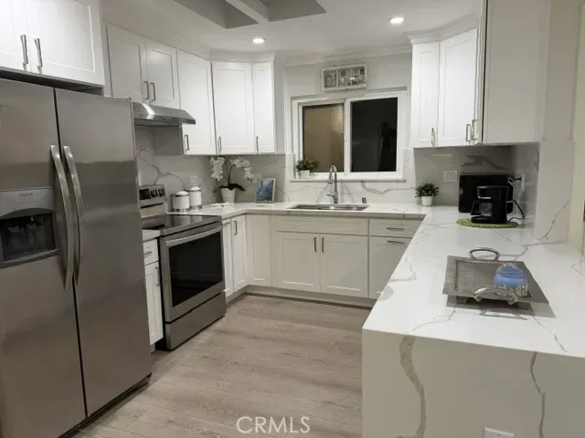 Welcome to this elegantly remodeled townhome in the prestigious senior community of Laguna Woods. This most sought-after “Valencia” single-level home features two bedrooms, two bathrooms, no one above and no one down, a private yard, detached carport, in-unit laundry, and a golf cart parking space. The home was newly updated with durable vinyl flooring throughout and has three independent heating and air conditioning units for zoned comfort, plus smooth ceilings. A spacious living area with a skylight provides abundant natural light. The kitchen offers custom cabinets and quartz countertops, and both bathrooms have been updated with new tile floors and wall tiles. Enjoy a private patio with a beautiful open view. Conveniently located between Gates 5 and 6 with plenty of guest parking. Come enjoy resort-style living with full amenities: two professional golf courses (one 27-hole and one 9-hole par-3 executive course), 24/7 security gates, three fitness centers, ten tennis courts, five pools, an equestrian center, performing arts theater, seven clubhouses, a library, and over 250 social clubs and activities. Shopping, restaurants, churches, and medical facilities are very close by.