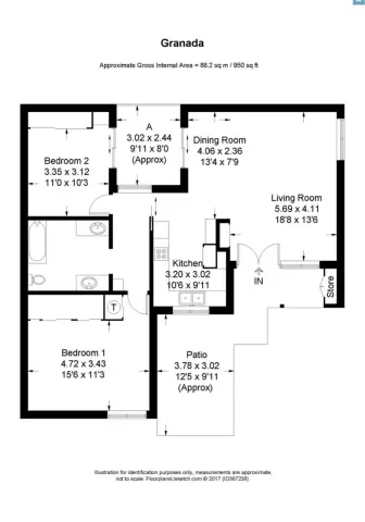 950 sqft / 0.02 acres (approx)