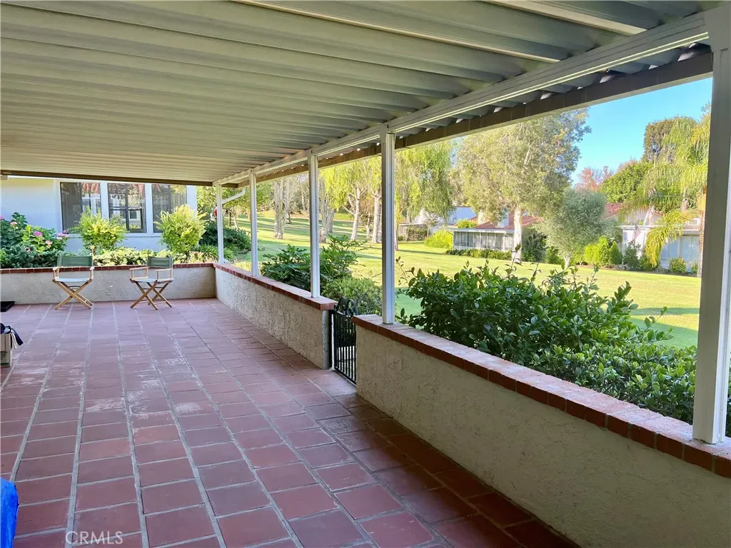 This very popular 2-br, 2-ba Villa with a premier location within the Laguna Woods retirement community. Easy access from gate with a 180 degree park/green belt View. This home has nearly 1600sf of living space in addition to a lovely Private Front courtyard. The kitchen has granite countertops, a cozy breakfast nook, pull-out cabinet drawers and plenty of storage. The living room has a fireplace, vaulted ceiling and a baby grand piano. The master bedroom suite also has a vaulted ceiling. Guest bedroom could serve with flexibility as a hobby room or home office. Both bathrooms have granite countertops, new cabinetry, tile floors throughout the home. The master bathroom has dual sinks. The extra large rear patio has a spectacular park/green gelt view looks like a golf course, easily accessed or seen from the living room or dinning room area. Other great features include central heat/AC, smooth ceilings and a full sized washer & dryer in garage. You can move right in to your new home in Laguna Woods Village – the premier 55+ community. Enjoy the amenities of Laguna Woods Village including: a 18 and par 3 golf course, separate pickle ball courts, 7 clubhouses, 5 swimming pools, tennis complex, fitness center, garden center, RV storage, community transportation, community television and a restaurant overlooking the golf course. There is 24 hour security. There are over 250 clubs and organizations. Just minutes away from Laguna Beach, freeways, medical facilities and shopping. The HOA includes water, sewer, trash, basic cable TV and landscaping. Come and see this beautiful home in a great community!
