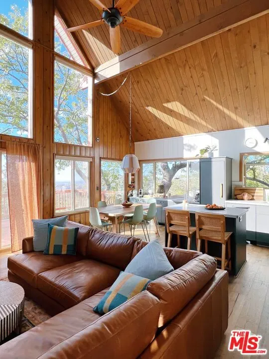 Blue Bell Lodge is a beautiful mountain retreat nestled among fragrant cedar, oak, and pine trees in the sought-after Arrowhead Woods neighborhood. Floor-to-ceiling windows take in exceptional views and gorgeous sunsets. The home features wide-plank oak floors, vaulted beamed ceilings, two stone fireplaces, and thoughtfully curated furniture. The chef’s kitchen is built to impress, with generous counter space and sliding glass doors opening onto a spacious deck the perfect perch for al fresco dinners and breathtaking mountain views. Watch deer, bears, bobcats, and more roam freely below; it’s the kind of scenery that pulls even the most screen-addicted guest back into the present moment.Upstairs, the charming A-frame loft delights with a kids’ play nook and two custom built-in single beds tucked right into the roofline a detail that feels equal parts storybook and smart design. With room for two families to spread out comfortably, lake rights included, and easy access to both Lake Arrowhead and Lake Gregory, this high-altitude escape checks every box.A proven performer, this home has been a top-rated Airbnb for 4+ years with a loyal following of 5-star reviews and strong, consistent income. (Seller is open to including the thoughtfully curated furniture, making this a truly turnkey opportunity.)