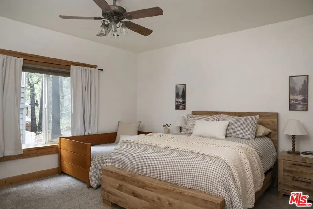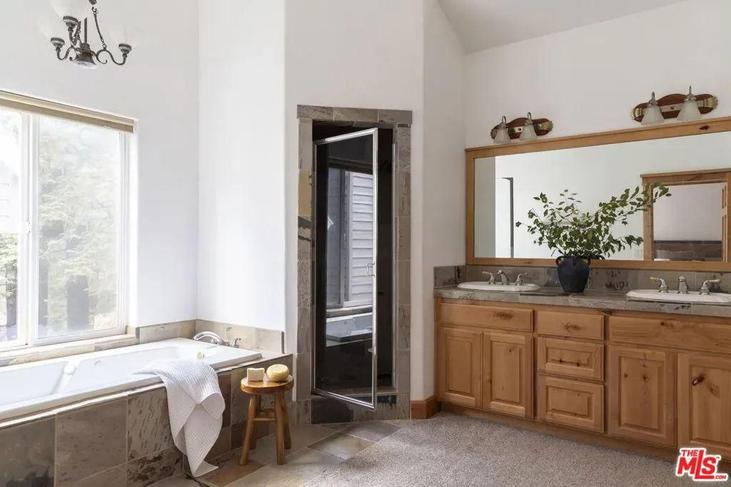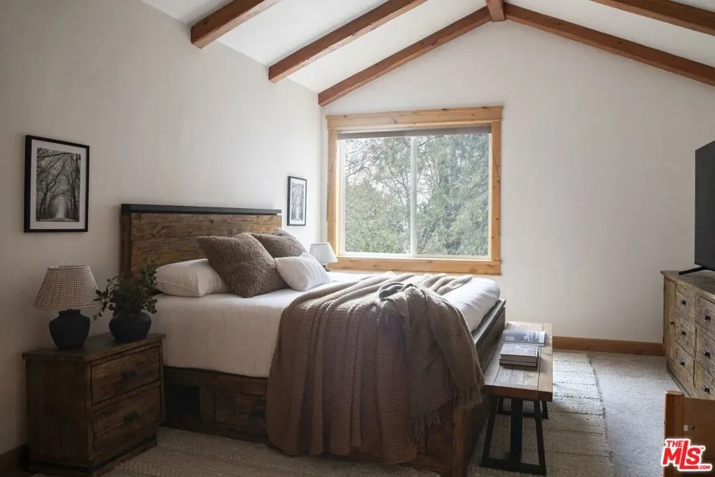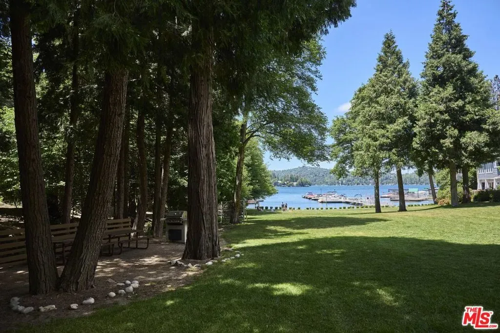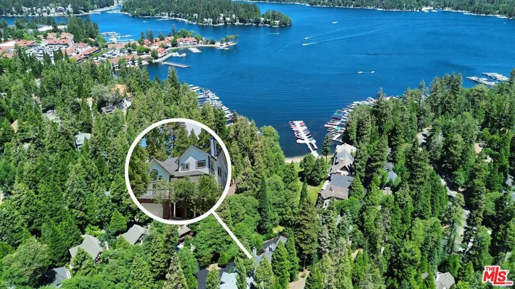 The Lake Arrowhead package everyone has been waiting for a rare opportunity to own in the exclusive, gated community of Village Cove, just a five-minute walk to Lake Arrowhead Village and steps from the lake trail. This is true first-tier lakeside living in one of the most desirable neighborhoods on the mountain. Offered as a full furnished and lifestyle package, the sale also includes a 2023 Sea-Doo Switch Limited Boat and a full year of dock rental, ready for summers on the lake. Inside, the home is designed for effortless entertaining and relaxed mountain living. The open-concept kitchen, dining, and living areas flow seamlessly to an outdoor deck overlooking a beautiful forest backdrop and seasonal creek. The kitchen features a high-end range, walk-in pantry, and wine fridge with bar area – perfect for entertaining after a long day on the lake. The living room is warm, inviting, and flooded with natural light with soaring cathedral ceilings, exposed beams, and a striking floor-to-ceiling stone fireplace that keeps the space cozy. The 3500 sq ft spacious layout offers five ensuite bedrooms, two fireplaces, a versatile bonus room – currently styled as a bunk room, and a two-car garage, creating comfort and flexibility for full-time living or hosting guests. Additional highlights include dual A/C, a full-house generator, recently painted exterior and interior, and exceptional maintenance throughout. Village Cove itself offers park-like grounds with panoramic lake views, a seasonal stream, lush forest surroundings, and a private expansive lawn and beach area – a rare combination of privacy, walkability, and lake access. This isn’t just a home. It’s the Lake Arrowhead lifestyle, fully dialed in.