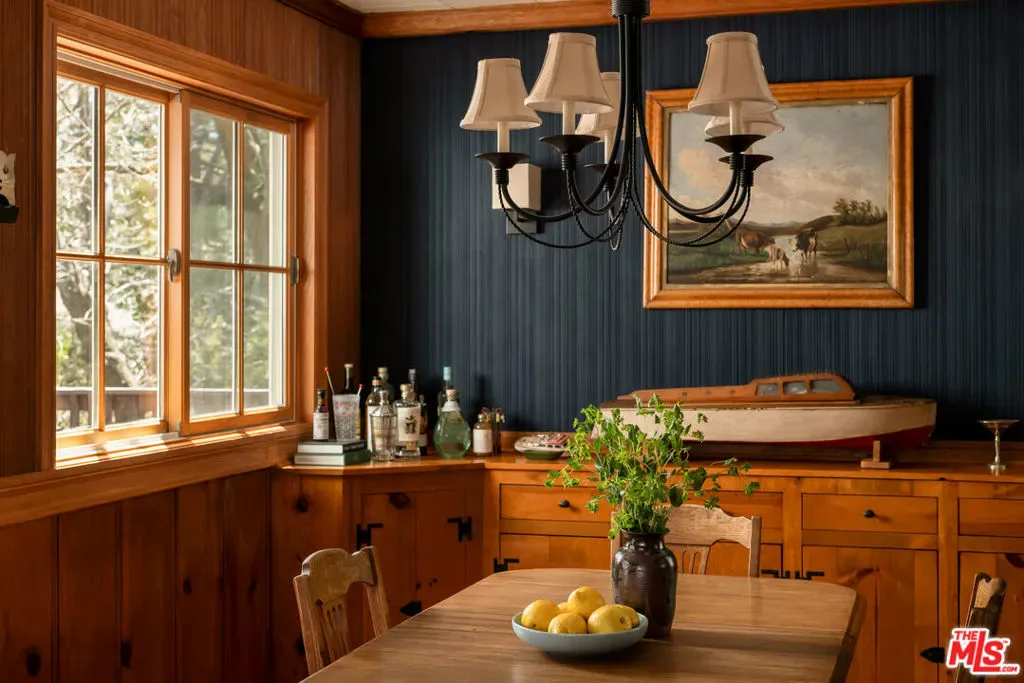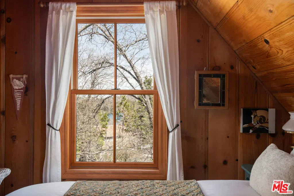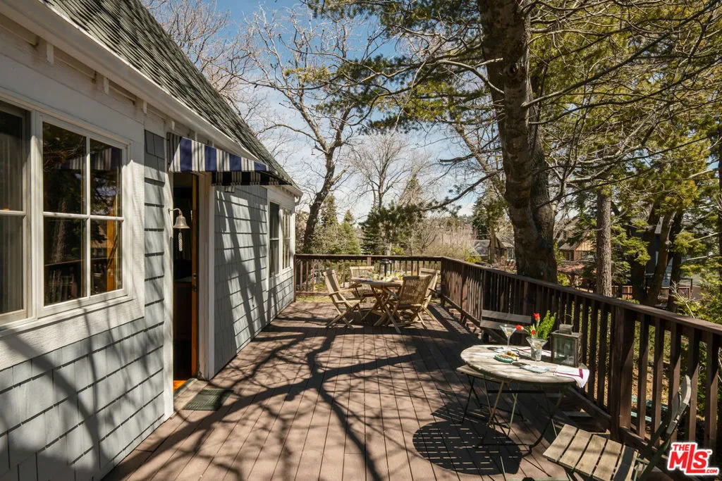 A design-forward cabin with a rare adjacent parcel (totaling 8,000+ sq ft) perfectly positioned at the crest of Lake Arrowhead’s coveted Palisades neighborhood. Originally built in 1949, this thoughtfully preserved retreat blends timeless character with modern comfort, set among towering oak and pine trees and enveloped by lush, curated gardens that feel both private and inviting. Inside, the main living space is warm and light-filled, with exposed beams and walls of Anderson wood windows that bring the outdoors in. Restored Douglas fir floors and rich combed mahogany paneling create a sense of heritage and craftsmanship, while slate finishes in the kitchen and baths add a grounded, contemporary edge. The open yet intimate layout flows effortlessly, offering both airy gathering spaces and cozy corners to unwind.The dining room is a stand out, stylish and welcoming, with custom handcrafted cabinetry and direct access to an oversized elevated deck. Surrounded by mature greenery, it’s an ideal setting for everything from quiet morning coffee to sunset dinners under the trees, no matter the season. The front garden, dotted with roses, apple trees, and layered landscaping, offers yet another enchanting space to relax or entertain.The vintage-inspired kitchen has been tastefully updated with modern conveniences, maintaining its charm while meeting today’s lifestyle needs. A bath and additional storage complete the main level. Upstairs, three character-rich bedrooms feature soft, dappled light and filtered lake views, creating peaceful retreats. A second bath blends vintage style with modern updates, and an enclosed laundry adds everyday ease. Just a short stroll leads you to scenic trails and the calm, deep waters of Palisades Point, one of the area’s most serene lakeside settings. This property also includes coveted lake rights, granting access to the full Lake Arrowhead Lake experience, boating, swimming, fishing, and exclusive shoreline enjoyment reserved for owners. With the added adjacent parcel, there’s rare potential for expansion, whether envisioning a guest house, garage, or creating a more expansive living space. This is a unique opportunity to own a piece of Lake Arrowhead history while enjoying the best of modern mountain living, with room to grow and make it your own. Central A/C, upgraded systems and ample flat parking complete this one of a kind offering. Additional adjacent parcels and a luxury 1/2 double dock with dock house on Palisades Pt. is available for additional price. Lake Rights are included!