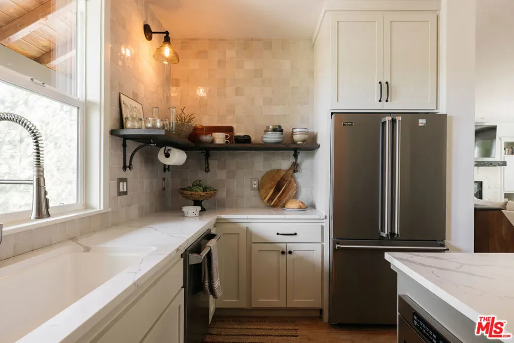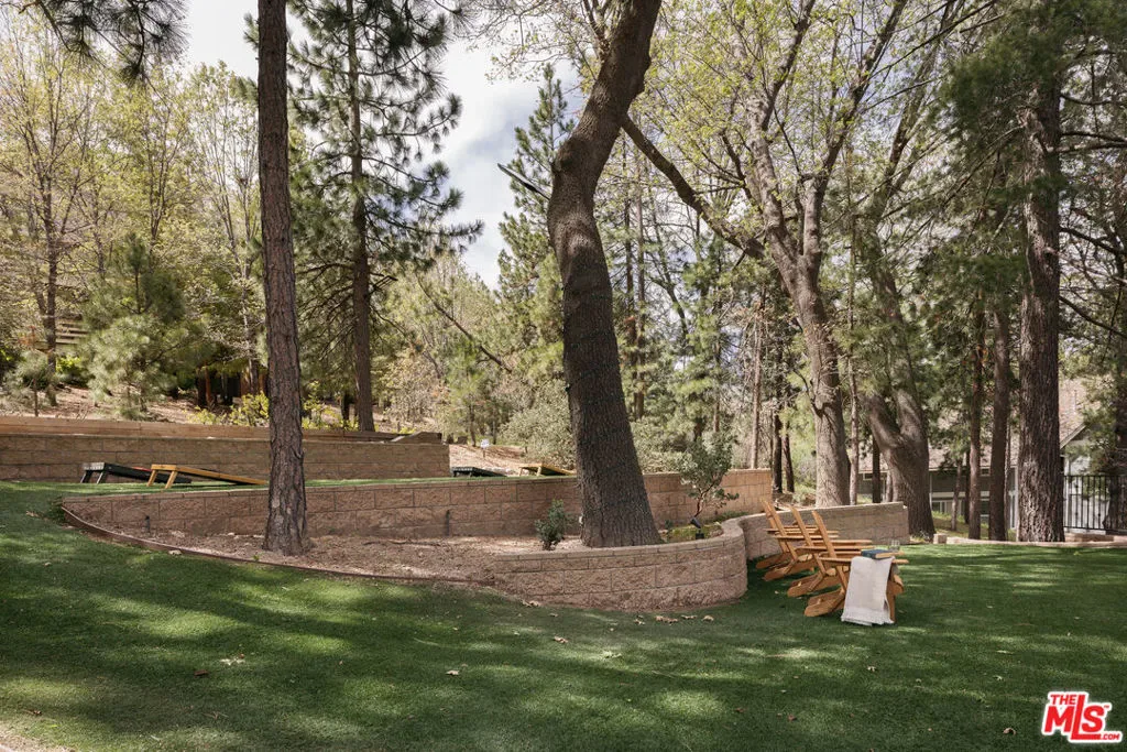 Tucked among towering oak and pine trees, this bright and airy lake house offers an exceptional blend of design, comfort, and mountain serenity. Ideally located on a quiet cul-de-sac just moments from the North Shore Trail of Lake Arrowhead, Tavern Bay Beach Club, and the UCLA Lake Arrowhead Lodge, the setting is as convenient as it is peaceful. Inside, the home unfolds into a well designed 4-bedroom, 3-bathroom layout filled with natural light. The open-concept main living space is both inviting and refined, anchored by a beautiful stone fireplace and adorned warm hardwood floors. A seamless flow connects the welcoming living area to the dining space and into a stunning, fully upgraded kitchen. Here, custom cabinetry, quartz countertops, handcrafted Zellige tile, and premium Viking appliances create a space that is as functional as it is visually striking, complete with a pantry and Kohler fixtures.The primary suite is a true sanctuarygenerously sized with vaulted ceilings, its own fireplace, and a spacious walk-in closet. The en-suite bath evokes a spa-like experience, featuring a double vanity with Zellige countertops and a soaking tub positioned to capture tranquil forest views. Three additional bedrooms are equally well-proportioned, offering flexibility for guests, work-from-home spaces, or family living. Step outside and discover what is arguably the most special part of the property: a beautifully landscaped, multi-level terraced backyard designed for both relaxation and entertaining and a rarity for the area. Expanses of lush turf are complemented by a gazebo, dining area, horseshoe court, and inviting Adirondack seatingcreating a setting perfect for gathering under the trees. A path above the home leads to the locally cherished “Zen Deck,” where peaceful lake views await. Additional features include an oversized two-car garage, dual-zone central heating and cooling, a natural gas standby Generac whole-house generator, refinished solid hardwood flooring, brand-new carpeting, and fresh interior and exterior paint. Meticulously curated and move-in ready, this home includes lake rights and is a rare opportunity to own a beautifully designed mountain escape where every detail has been thoughtfully considered.