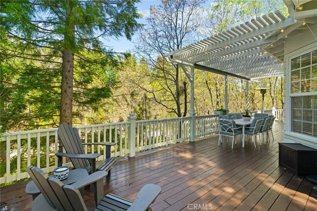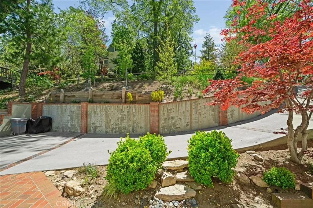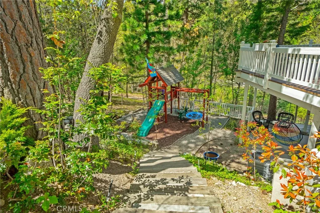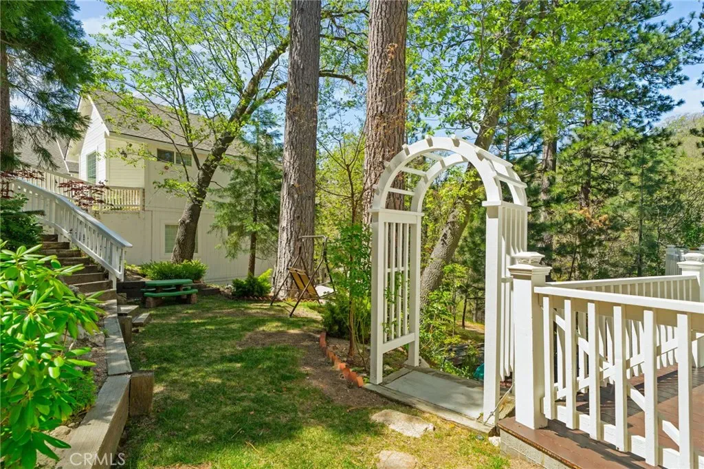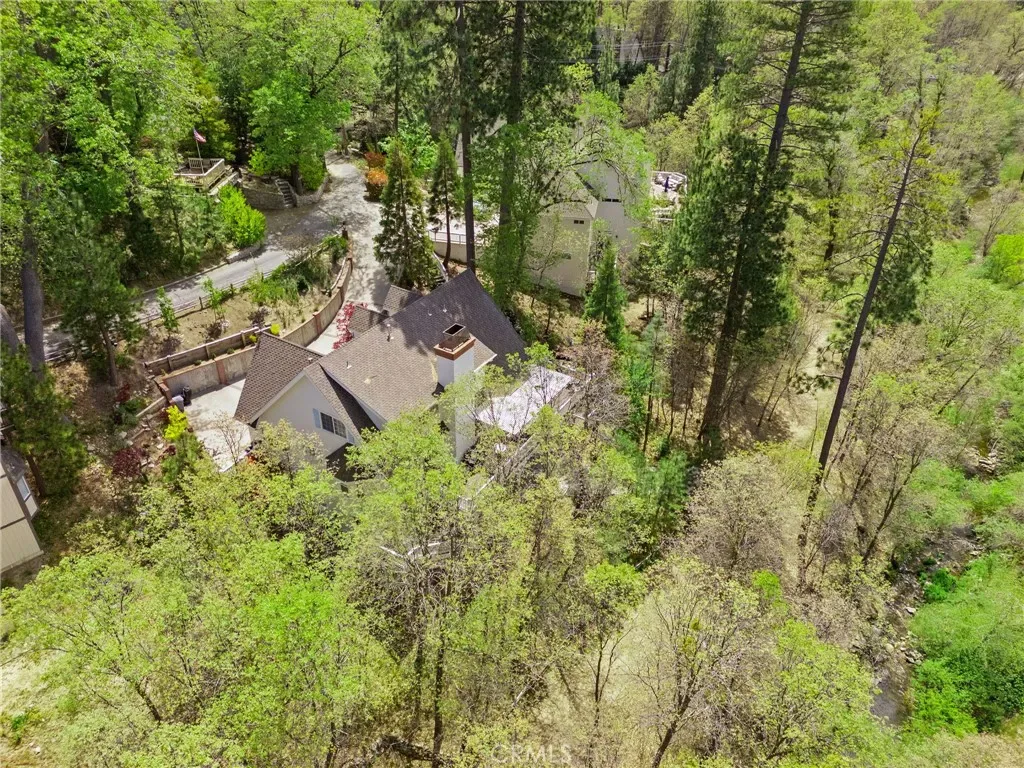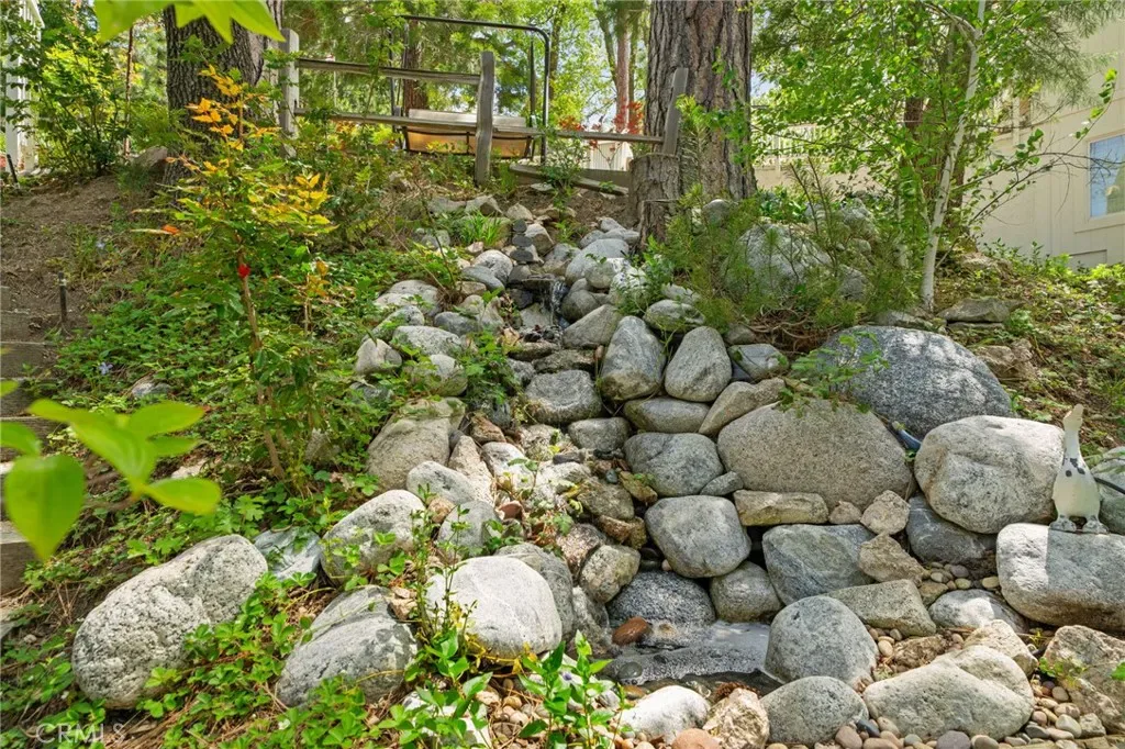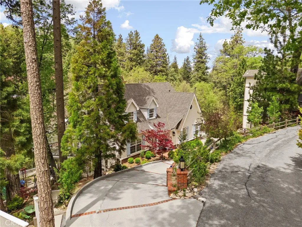 Located in the coveted Tavern Bay neighborhood along the North Shore of Lake Arrowhead, this custom-built home offers a rare blend of refined mountain living and effortless access to the lake, just a short stroll to Tavern Bay Beach Club. Thoughtfully designed and impeccably maintained, the home features 3 bedrooms and 3.5 bathrooms, with quality craftsmanship evident throughout. The main level hosts a beautifully appointed primary suite, creating a sense of ease and livability, while the open, airy layout is equally suited for quiet weekends or hosting guests. You will find a two living rooms and an expansive fireplace anchoring the calming energy of this retreat like home. Upstairs, two generously sized bedrooms are complemented by a bathroom and a whimsical hidden door through the closet to another bonus room offering a playful and unexpected escape, perfect for creating lasting memories for kids and adults. Natural elements take center stage at this unique property, with a seasonal creek and cascading waterfall creating a peaceful, storybook setting, best enjoyed from the expansive deck. The grounds have been carefully enhanced with Aspen and Nordmann Fir trees, drip irrigation, rebuilt retaining walls, and a french drain system, thoughtfully blending beauty with function. The deck has been recently re-stained and features a rebuilt pergola, offering an inviting space for outdoor dining or tranquil peace beneath the trees. Inside, the home balances warmth with modern upgrades. A gas range was recently added, along with a new furnace and air conditioning system, ensuring year-round comfort. Every detail has been considered to maintain both efficiency and ease of living. Function meets flexibility with an oversized garage, abundant storage, ample parking, usable land, a spacious laundry and craft room, and a separate full walk-in pantry, making it ideal for full-time living or extended stays. The exterior has been freshly painted, and a 14kW Generac natural gas generator provides added peace of mind in every season. Homes in this location, offering this level of privacy, thoughtful upgrades, and lake rights just moments from the water, are increasingly rare. This is a property that captures the essence of peaceful, elevated Lake Arrowhead living.