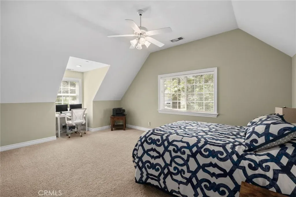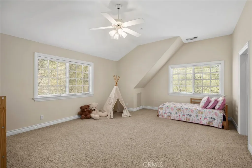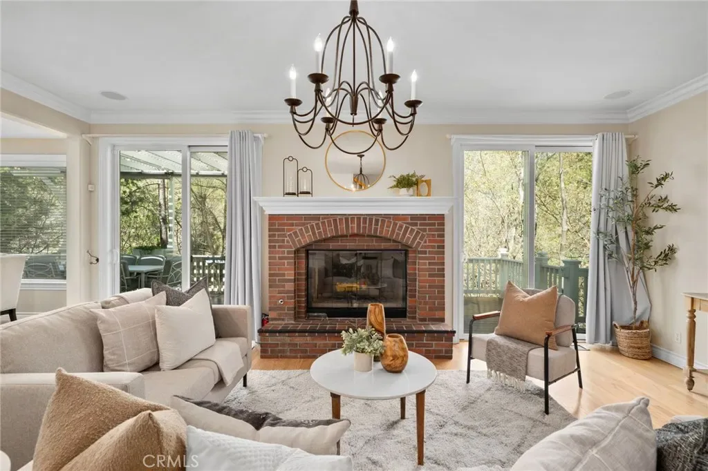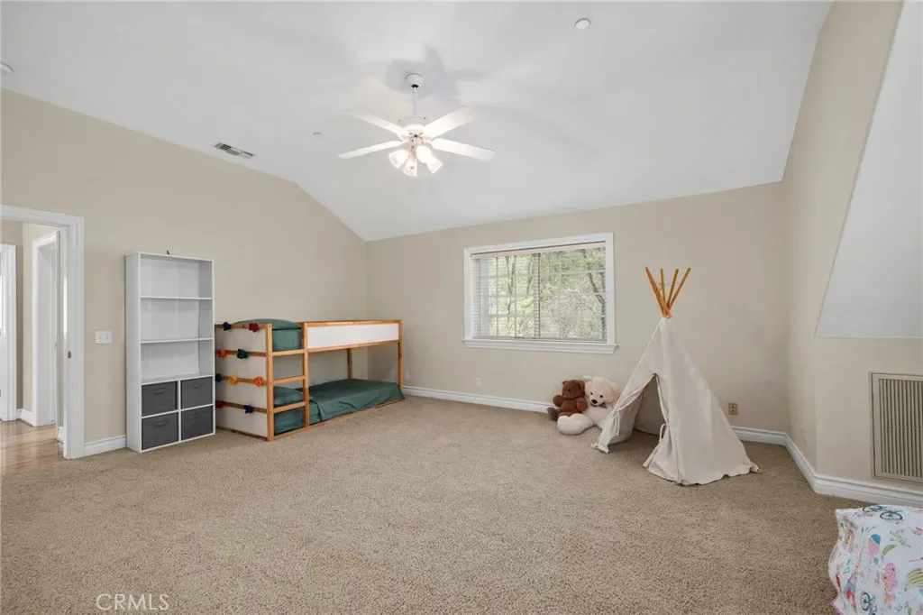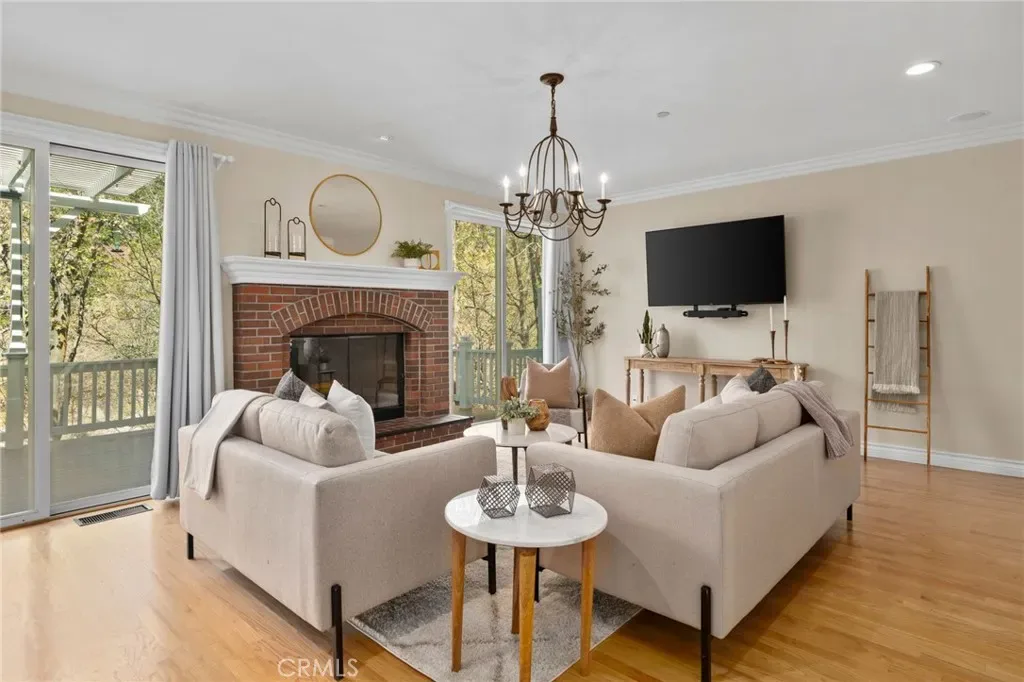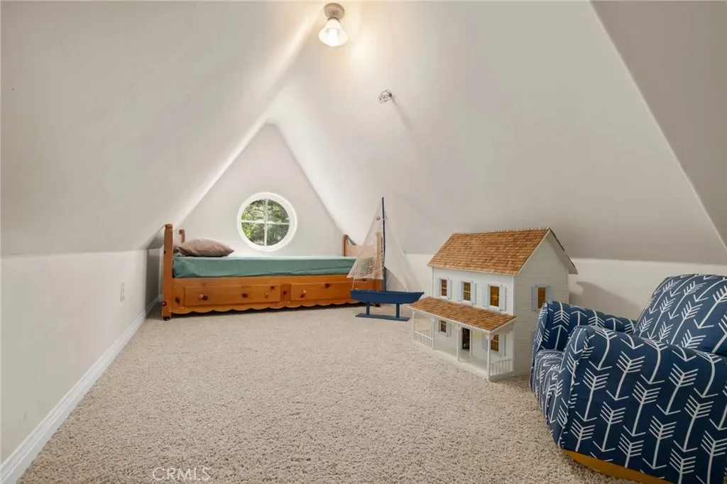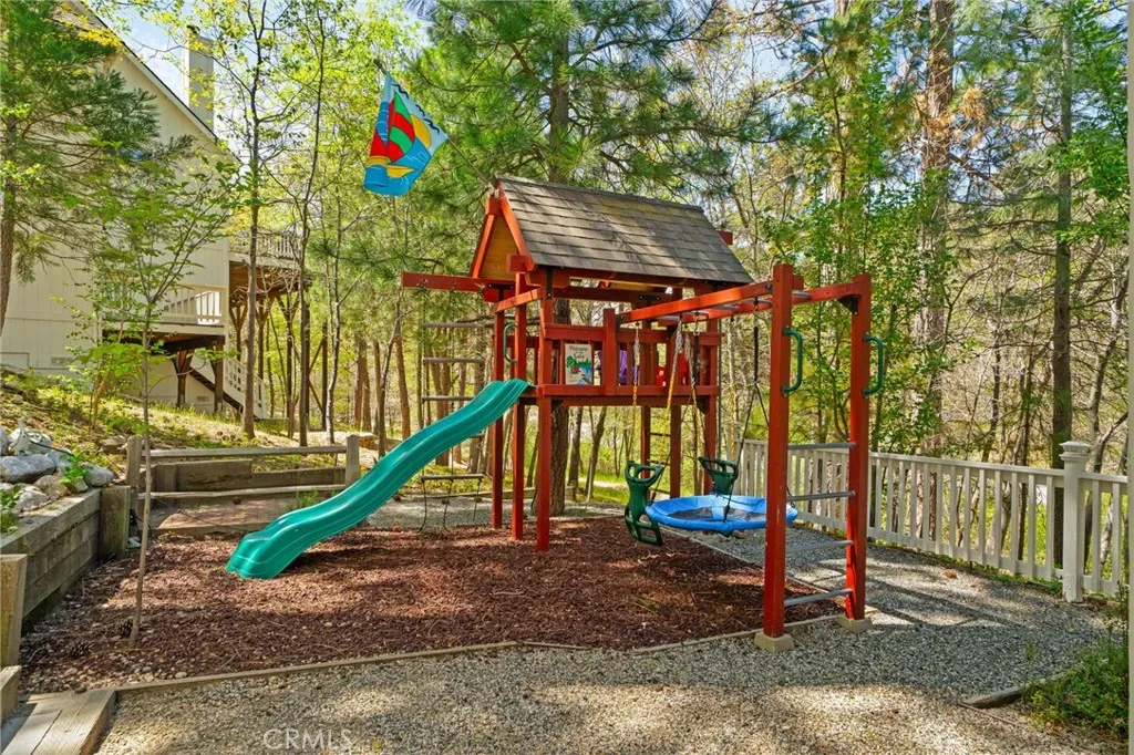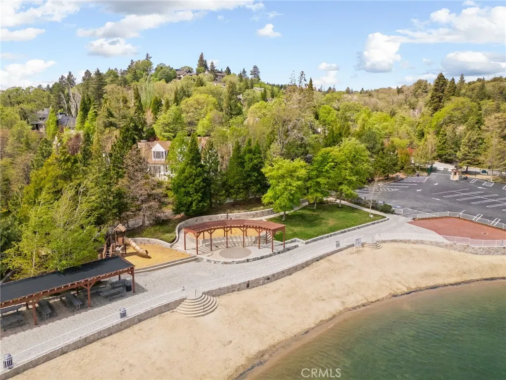 Located in the coveted Tavern Bay neighborhood along the North Shore of Lake Arrowhead, this custom-built home offers a rare blend of refined mountain living and effortless access to the lake, just a short stroll to Tavern Bay Beach Club. Thoughtfully designed and impeccably maintained, the home features 3 bedrooms and 3.5 bathrooms, with quality craftsmanship evident throughout. The main level hosts a beautifully appointed primary suite, creating a sense of ease and livability, while the open, airy layout is equally suited for quiet weekends or hosting guests. You will find a two living rooms and an expansive fireplace anchoring the calming energy of this retreat like home. Upstairs, two generously sized bedrooms are complemented by a bathroom and a whimsical hidden door through the closet to another bonus room offering a playful and unexpected escape, perfect for creating lasting memories for kids and adults. Natural elements take center stage at this unique property, with a seasonal creek and cascading waterfall creating a peaceful, storybook setting, best enjoyed from the expansive deck. The grounds have been carefully enhanced with Aspen and Nordmann Fir trees, drip irrigation, rebuilt retaining walls, and a french drain system, thoughtfully blending beauty with function. The deck has been recently re-stained and features a rebuilt pergola, offering an inviting space for outdoor dining or tranquil peace beneath the trees. Inside, the home balances warmth with modern upgrades. A gas range was recently added, along with a new furnace and air conditioning system, ensuring year-round comfort. Every detail has been considered to maintain both efficiency and ease of living. Function meets flexibility with an oversized garage, abundant storage, ample parking, usable land, a spacious laundry and craft room, and a separate full walk-in pantry, making it ideal for full-time living or extended stays. The exterior has been freshly painted, and a 14kW Generac natural gas generator provides added peace of mind in every season. Homes in this location, offering this level of privacy, thoughtful upgrades, and lake rights just moments from the water, are increasingly rare. This is a property that captures the essence of peaceful, elevated Lake Arrowhead living.