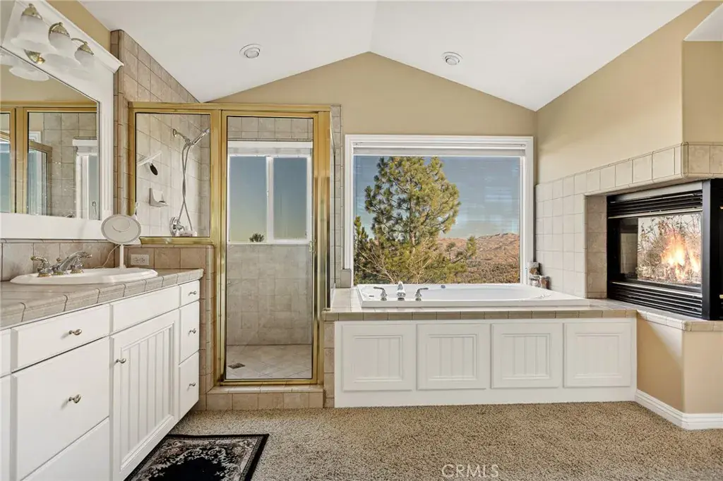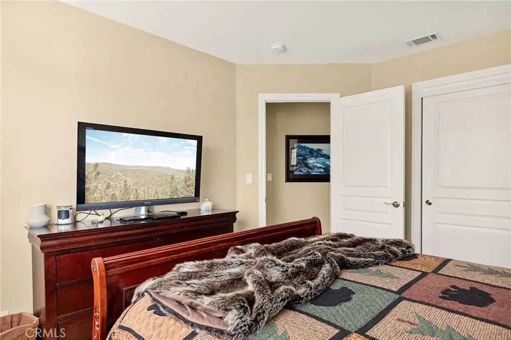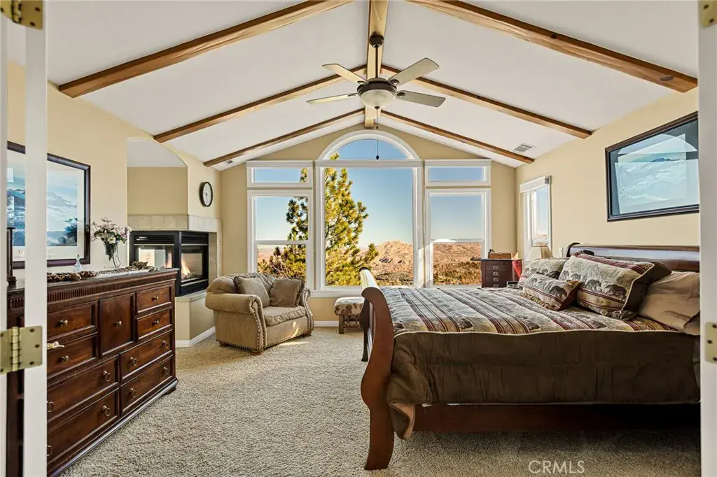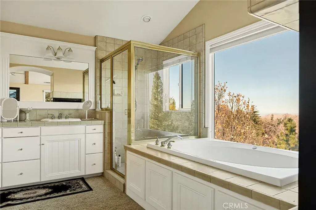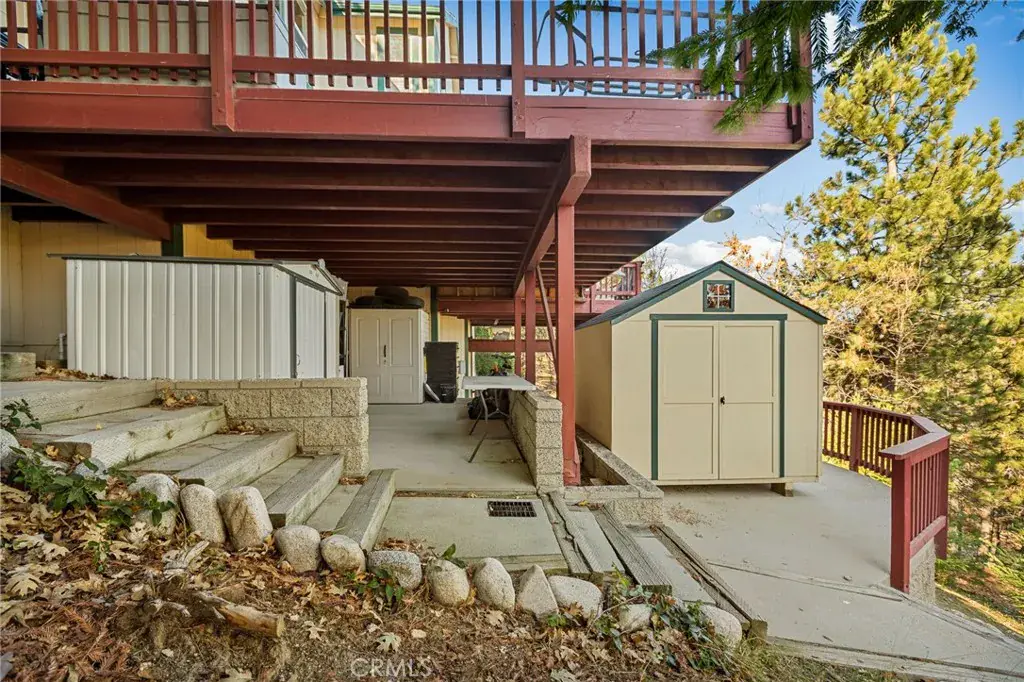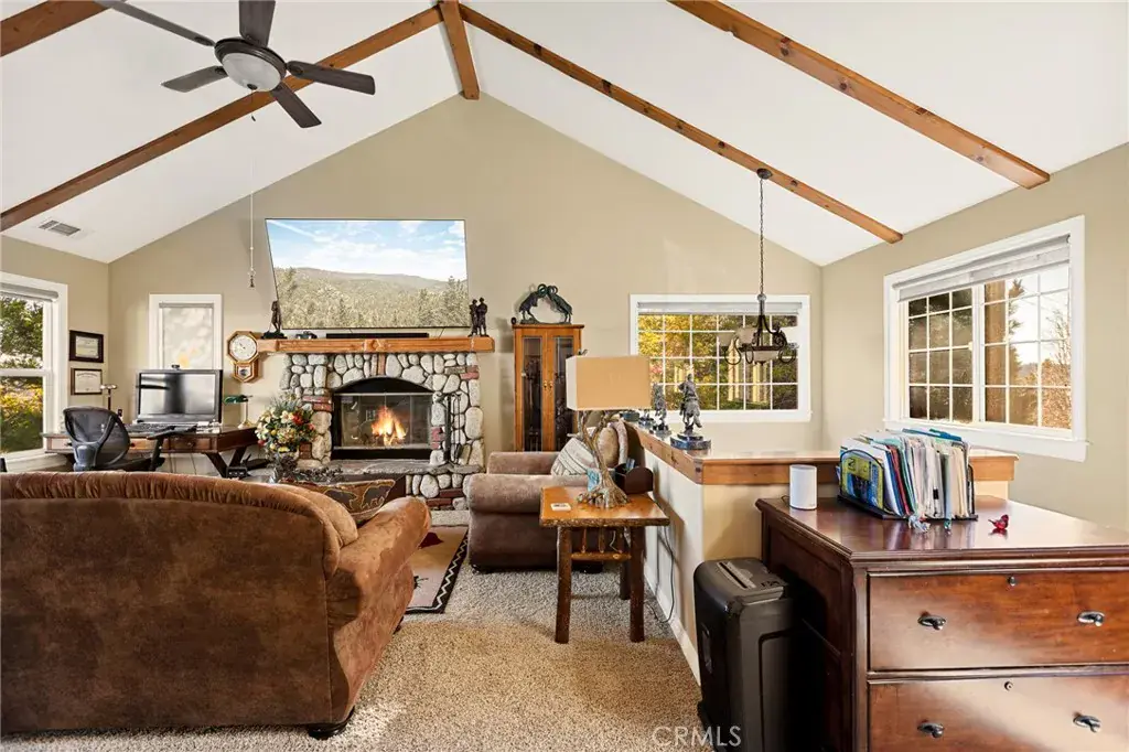 A Rare Mountain Gem with Views That Will Take Your Breath Away. Tucked away in a peaceful, low-traffic neighborhood, this mountain retreat offers the kind of views that are truly indescribable—like stepping into a painting. With 180-degree panoramic vistas stretching across forested ridgelines, the high desert, and twinkling city lights, you’ll find serenity and inspiration from every window. Plus, this home includes coveted lake rights to Lake Arrowhead—adding even more value to mountain living. Enjoy true level entry—a prized feature in snowy mountain communities—with not a single step to the front door. A large driveway able to hold 8 cars, deep two-car garage, and bonus RV parking or boat storage make this home as functional as it is beautiful. Inside, the cozy yet open living room welcomes you with rich hardwood floors, a striking river rock fireplace, and expansive windows that perfectly frame the show-stopping views. A spacious dining area flows into the charming farmhouse-style kitchen featuring white cabinetry, granite countertops, and stainless steel appliances—perfect for hosting holidays and special gatherings. The outdoor living space rivals the interior, with several distinct entertaining decks—all finished with a weatherproof surface for year-round use and durability. Whether you’re enjoying al fresco dinners, sipping morning coffee, or relaxing under the stars around the firepit, every space was thoughtfully designed to take full advantage of the incredible views. Upstairs, all bedrooms await along with a flex space perfect for game nights, movie marathons, or additional sleeping. This bonus room features vaulted ceilings, a fireplace, and some of the best views in the house. The primary suite is a true retreat with ample space for a king bed, a double-sided fireplace shared with the ensuite bath, and more stunning views of the National Forest. The bathroom includes a soaking tub, walk-in shower, dual vanities, and a huge walk-in closet with attic access. Two more spacious bedrooms and a stylish full bath are just down the hall. Below the home is a third level for storage or potential expansion, and additional outdoor sheds are perfect for tools, gear, or seasonal décor. A private access road below offers even more flexibility, ideal for off-road vehicle storage. AC, generator, & lake rights. Whether you’re looking for a full-time residence, second home, or future short-term rental, this property checks every box. Comes fully furnished.
