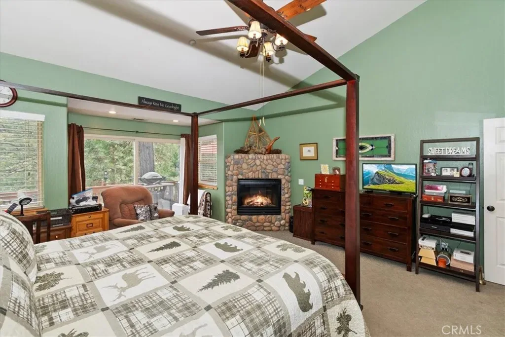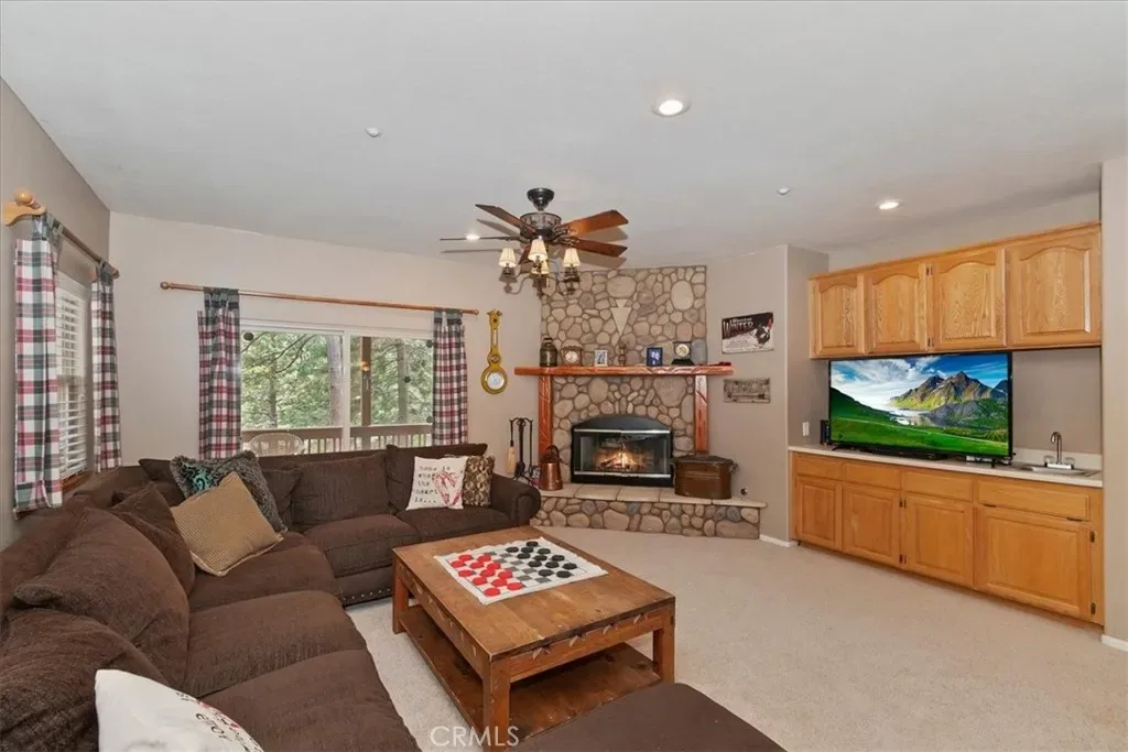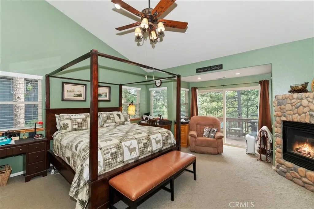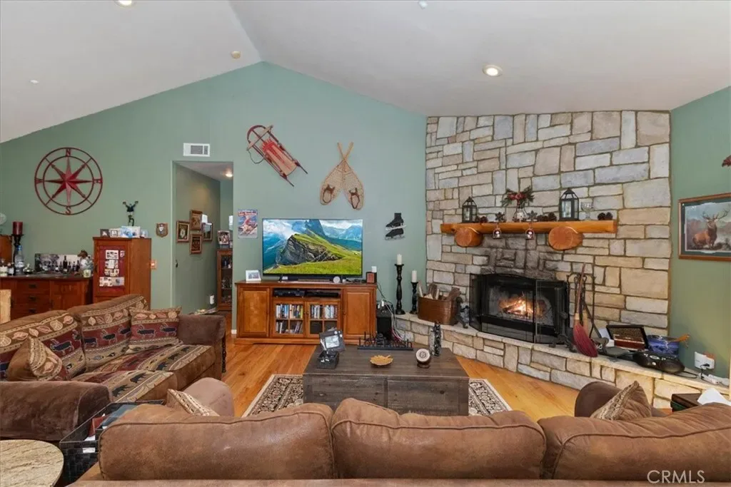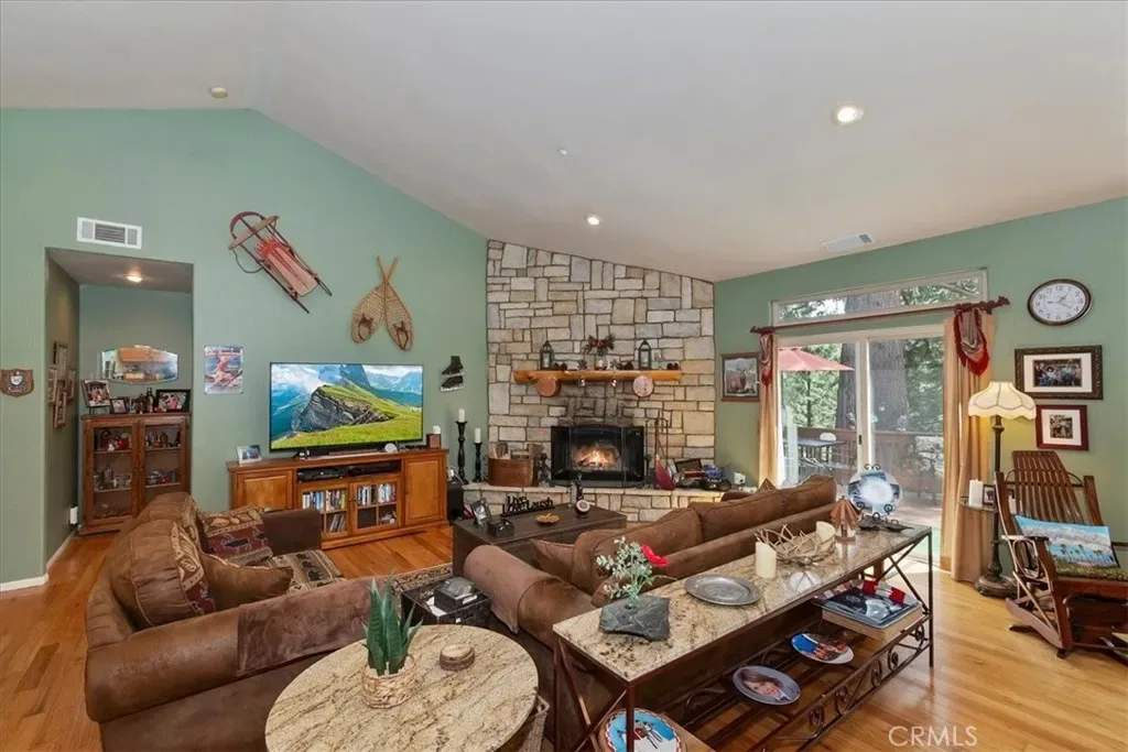 With 4 bedrooms and 4 baths, this level-entry home offers both convenience and luxury. The main-level master retreat is a true sanctuary, featuring a cozy fireplace, spa-style soaking tub, walk-in shower, and an oversized walk-in closet designed for comfort and ease. ~ At the heart of the home, the impressive great room showcases a striking wood-burning stone fireplace, and an open-concept layout that seamlessly connects the kitchen, dining, and living areas—perfect for entertaining and everyday living. Also is a private office or could be formal dining room or home gym or?? ~ Step outside to enjoy two expansive decks nestled among towering pines. One extends from the great room for effortless indoor-outdoor gatherings, while the second—accessible from the game room—offers a more private space to relax and unwind. ~ Downstairs, the oversized game room is an entertainer’s dream, complete with a third fireplace, wet bar, and billiards/ping pong—ideal for hosting friends and family year-round. ~ Custom details are evident throughout, from rich solid-oak flooring and unique kitchen finishes to handcrafted log railings that enhance the home’s mountain character. Modern upgrades include newer appliances, air conditioning, tankless water heater and a Generac generator for added peace of mind. ~ This exceptional property blends comfort, craftsmanship, and style—creating the perfect mountain escape or full-time residence. Includes full Lake Priveleges to the pristine blue waters of the private Lake Arrowhead. Located just 8 houses down to the lake trail and less then 1 mile to Blue Jay for shopping and dining. Public utilities & High-speed internet.