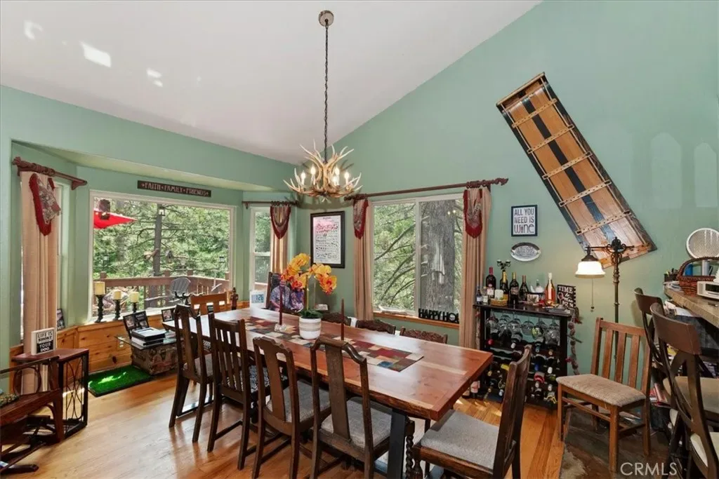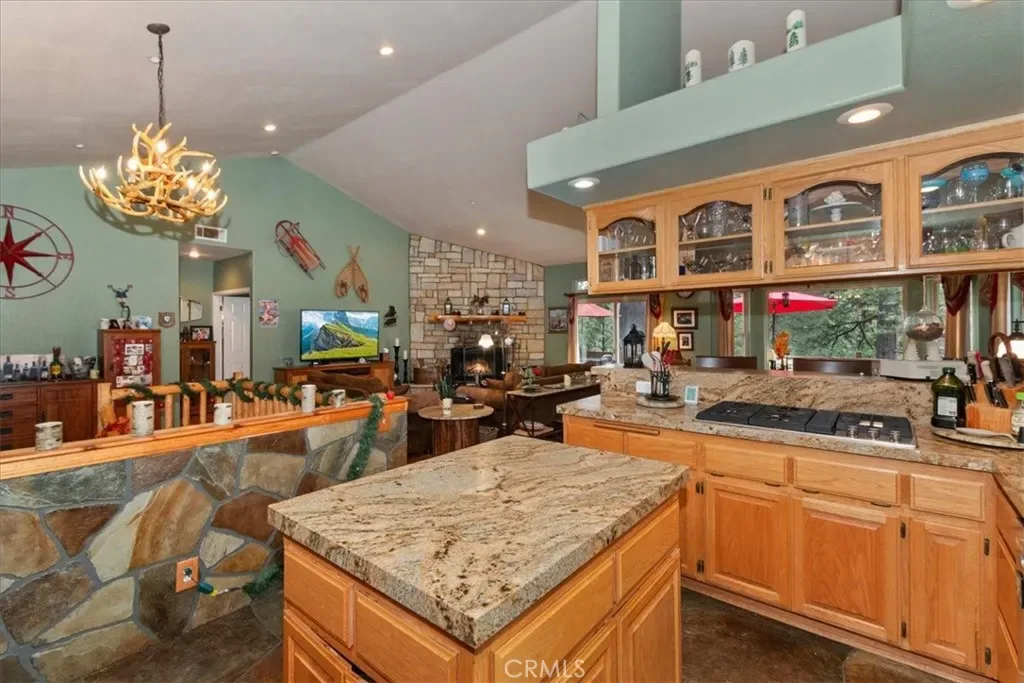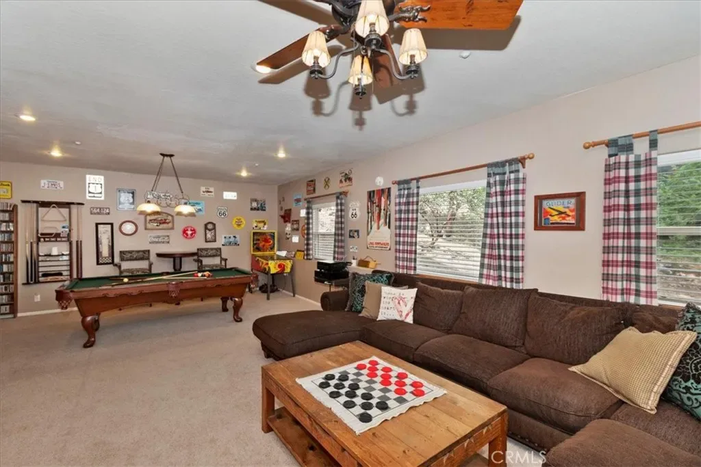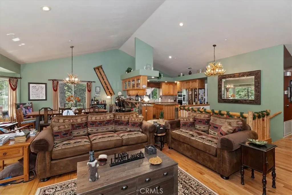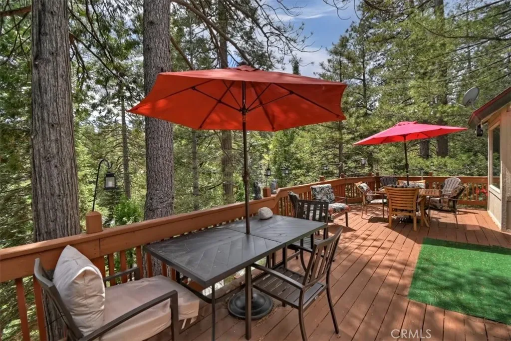 With 4 bedrooms and 4 baths, this level-entry home offers both convenience and luxury. The main-level master retreat is a true sanctuary, featuring a cozy fireplace, spa-style soaking tub, walk-in shower, and an oversized walk-in closet designed for comfort and ease. ~ At the heart of the home, the impressive great room showcases a striking wood-burning stone fireplace, and an open-concept layout that seamlessly connects the kitchen, dining, and living areas—perfect for entertaining and everyday living. Also is a private office or could be formal dining room or home gym or?? ~ Step outside to enjoy two expansive decks nestled among towering pines. One extends from the great room for effortless indoor-outdoor gatherings, while the second—accessible from the game room—offers a more private space to relax and unwind. ~ Downstairs, the oversized game room is an entertainer’s dream, complete with a third fireplace, wet bar, and billiards/ping pong—ideal for hosting friends and family year-round. ~ Custom details are evident throughout, from rich solid-oak flooring and unique kitchen finishes to handcrafted log railings that enhance the home’s mountain character. Modern upgrades include newer appliances, air conditioning, tankless water heater and a Generac generator for added peace of mind. ~ This exceptional property blends comfort, craftsmanship, and style—creating the perfect mountain escape or full-time residence. Includes full Lake Priveleges to the pristine blue waters of the private Lake Arrowhead. Located just 8 houses down to the lake trail and less then 1 mile to Blue Jay for shopping and dining. Public utilities & High-speed internet.