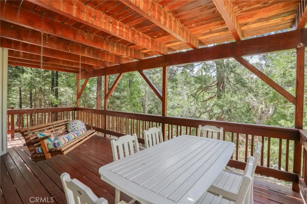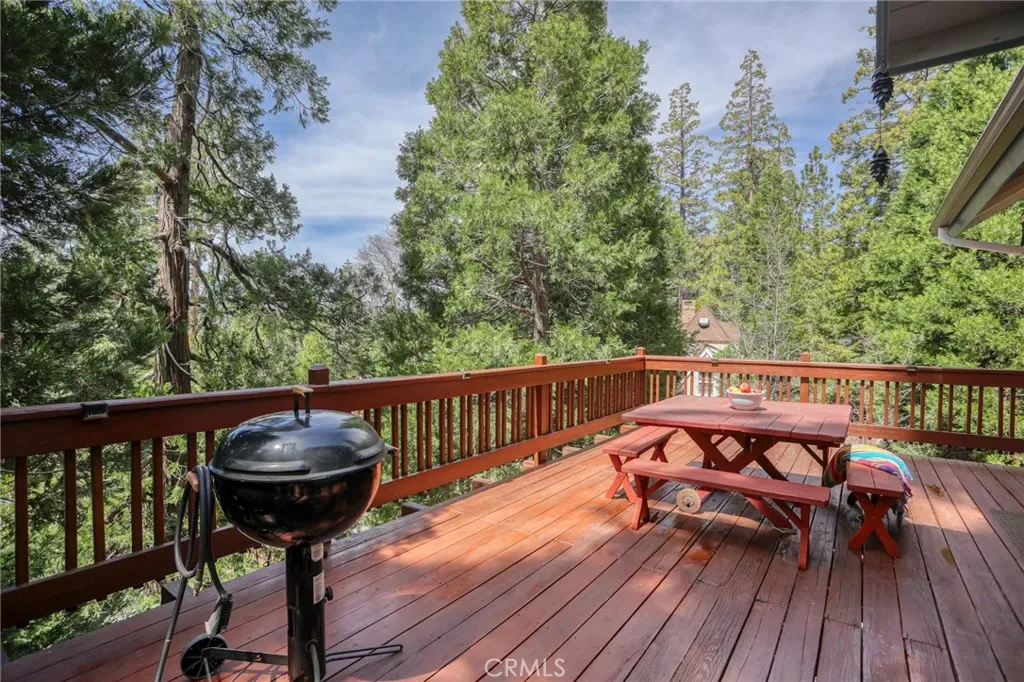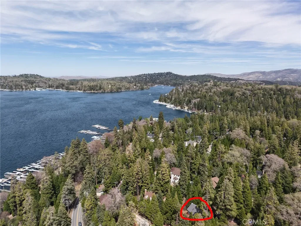 First time on the Market! Tucked in the forest in the heart of Lake Arrowhead in the magical alphabet lanes with Lake Rights and just 8 houses from the lake! This private and secluded cabin on a private road has been carefully and lovingly maintained by the original owner and embodies the perfect mountain retreat. Walk to the Lake path and Lake in less than 5 minutes. Walk to the village! Starting with the woodsy exterior and continuing into the interior where natural light, skylights, forest textures and stone make this home the one you have been waiting for! Spacious living area with soaring cathedral ceiling, converted gas Fireplace and skylights and windows to bring the forest in! The beautiful stone and brick floor-to-ceiling fireplace is the home’s centerpiece showcasing the rare beauty of natural stone and providing the perfect gathering space for friends and family. Directly outside is a large, inviting deck with areas for al fresco dining, reading, watching the wildlife or just listening to the breeze rustling through the pines. Beautiful forest views! The living area flows into the open dining area and kitchen with pantry with décor that mirrors nature’s crisp and warm forest hues. Hardwood flooring in the entry and kitchen and dining area complement the home with its warm wood texture. The primary ensuite is a private sanctuary with a beautiful stone gas fireplace, private deck with swing and attached full bath. Downstairs are also two private bedrooms or opportunities to pursue your private lifestyle choices for studios, fitness or wellness rooms and a full bath. The Laundry Room is conveniently located next to the bedrooms. The exterior of the home was freshly painted in late Fall 2025 and the interior is immaculate! There is also a Notice of Completion for all Section One Wood Destroying Pest work. Furnished per Positive Inventory List! Dual Pane windows and a spotless single car garage. There is a 2-3 car parking pad in front of the garage and additional parking below on A Lane. Most importantly, the home has lake rights to private Lake Arrowhead just a few minutes’ walk away. This woodsy hideaway would make the perfect mountain home, vacation home, rental or investment property. Come on up and enjoy the fresh mountain air and all Lake Arrowhead has to offer – the beautiful, private lake, the newly renovated Lake Arrowhead Village, Sky Park, Snow Valley Ski Resort and acres of National Forest. Make your Lake Arrowhead Dream a Reality!