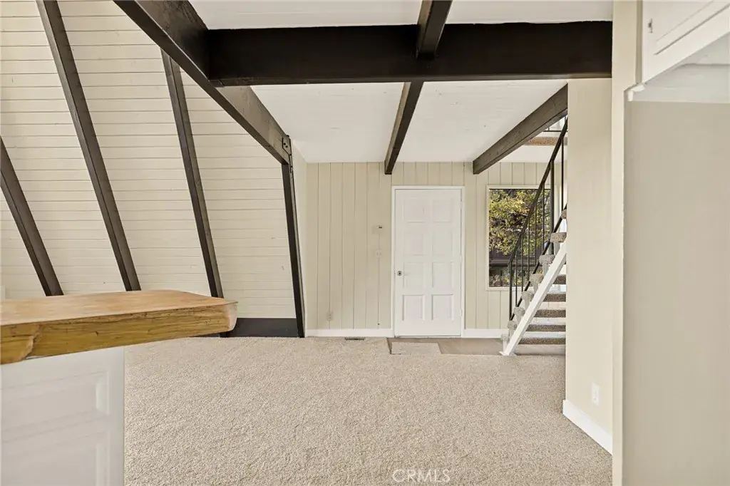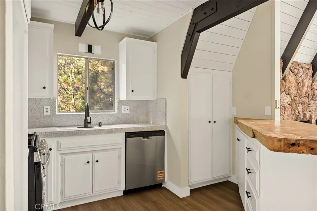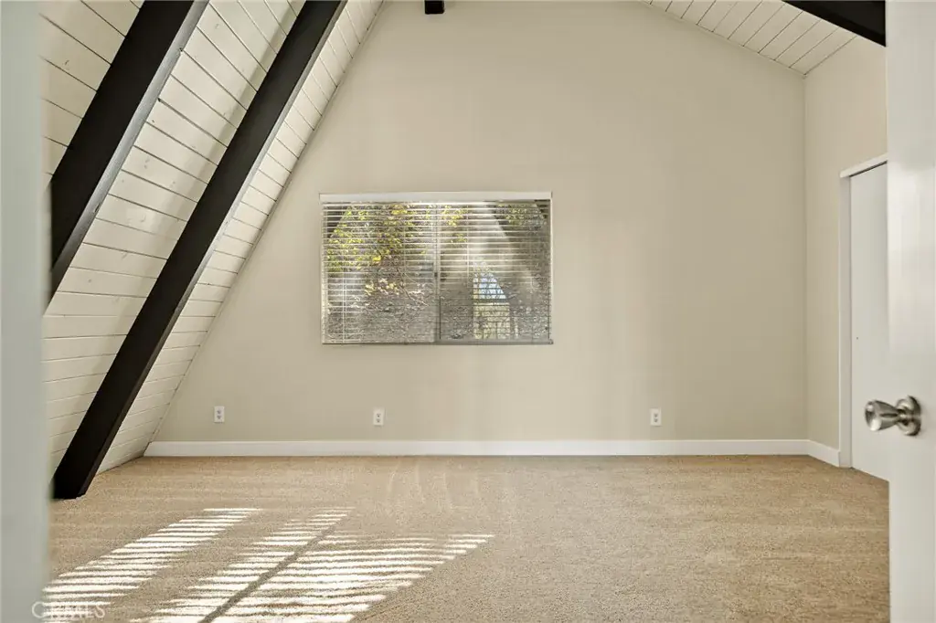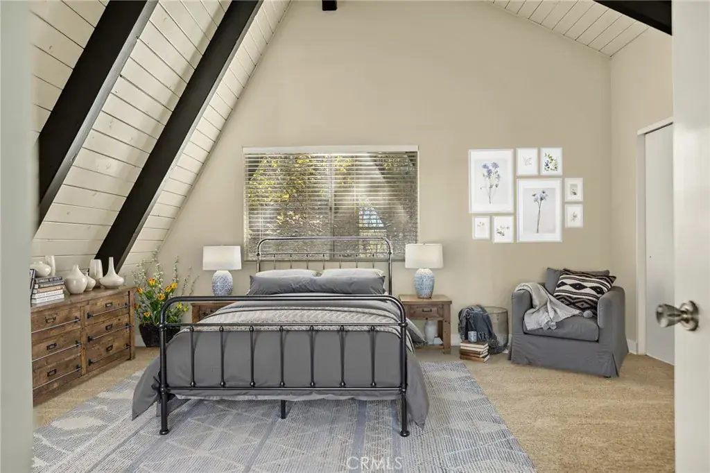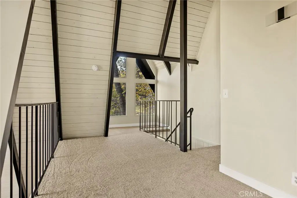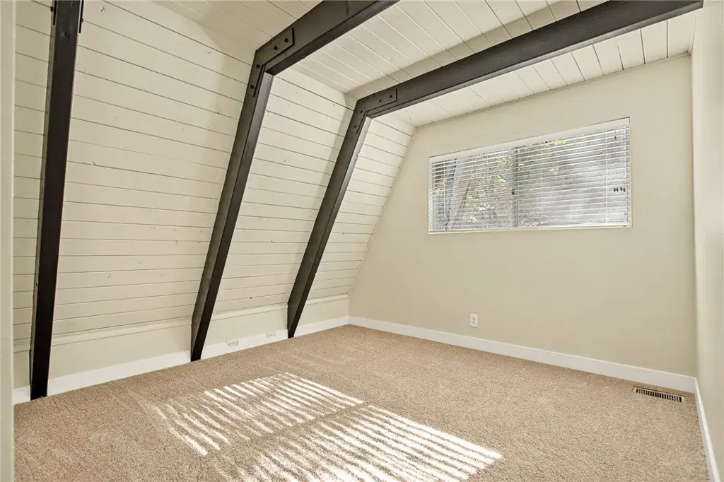 Lake rights ! Step into this beautiful remodeled A FRAME cabin—a timeless mountain favorite reimagined with a modern style and plenty of comfort. Just moments from the Lake Arrowhead Country Club with peeks of the course, this home captures the perfect blend of mountain charm and contemporary updates. Soaring open beam ceilings and dramatic A frame lines frame the great living room with natural light. The open concept living space features a cozy fireplace and large windows that frame the surrounding pine trees. The kitchen has been redone and brand new carpet throughout. This home is ideal for relaxing weekends or full time mountain living. Enjoy lake rights to our private lake and the unbeatable location near golf, dining and hiking. 3 big bedrooms and 2 baths all ready for you! Some photos are virtually staged. Come take a look !