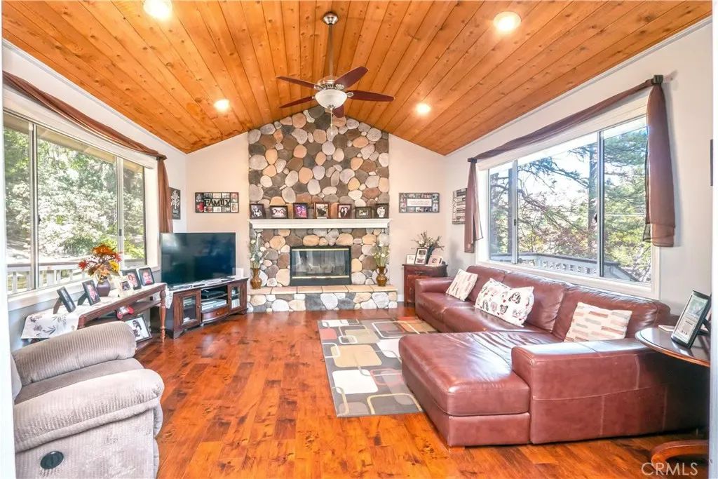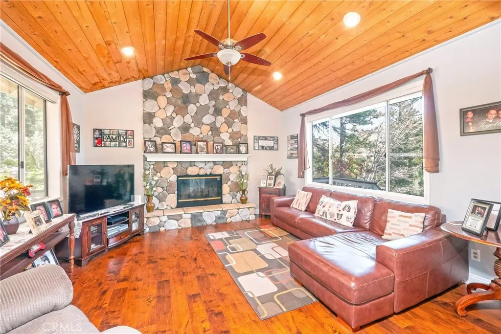 Beautiful Location with Views of the Mountains! A Spacious Home with a Comfortable, Open Floorplan. Whether you are a full time resident or looking for a part time vacation home, look no further! Large Kitchen with Island, Stainless Appliances and a great deal of storage space. Living Room, Family Room and Bonus Game Room are Fantastic for Entertaining! Main Level Bedroom can be used for Guests or an Office, has a built-in murphy bed. Large Master Suite upstairs with adjoining Master Bathroom. Walk-in shower with a separate jacuzzi tub and enormous Walk-In Closet. Two Additional Bedrooms upstairs with Jack and Jill Bathroom. Three Fireplaces and Double Furnaces for Cold Winter Nights. Central air was installed for Hot Summer Days. Separate Laundry Room inside the house. Decks outside of each bedroom with great views from all sides of the home. Fenced, Tiered Yard, Safe for Pets and Layout Great for Entertaining! More parking spaces available on the access road at the rear of the property. A Three Car Garage with lots of space for vehicles, shop equipment and includes overhead racks for storage. Plus, an 8′ X 8′ Lockable Storage Shed off the driveway! Located Near Highway 18 which makes for an easy commute. This Home has Lake Rights, is near the Golf Course and Country Club. Close to All that Lake Arrowhead and the Mountains Have to Offer. Create your own dream home, competitively priced and Will Not Last Long. Make an Appointment to See this Home Today!