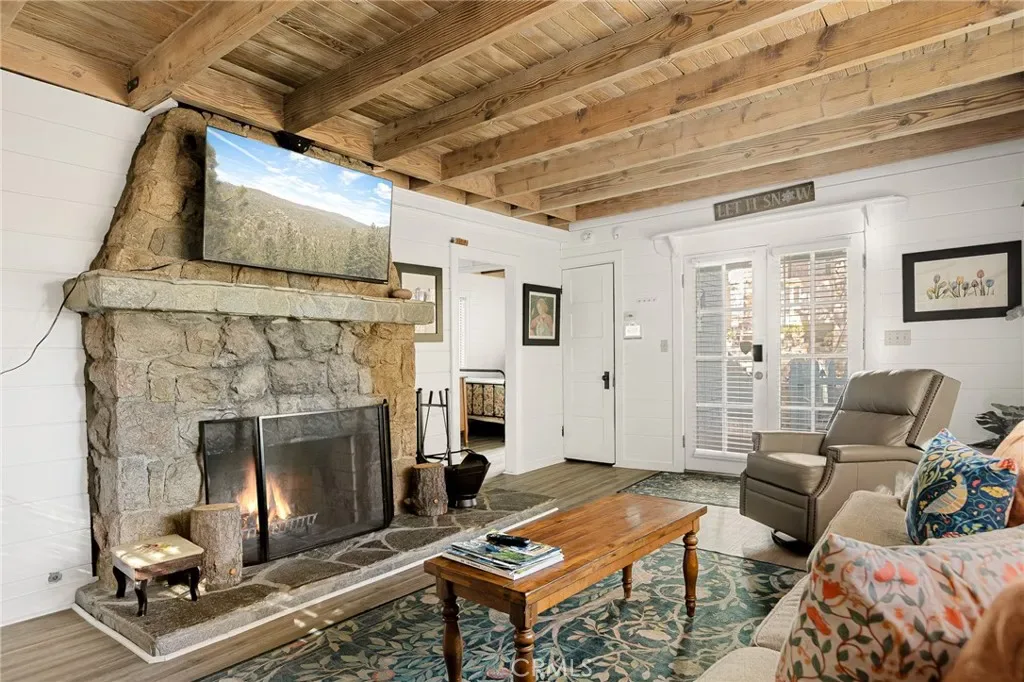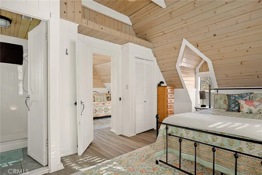 It had me from “hello.” A charming vintage cabin nestled among mountain foliage, adorned with breathtaking stonework and offered with full lake rights and optional turnkey appointments. The shingled façade immediately catches the eye, and within, a gorgeous fireplace takes center stage—no disappointment there. Beamed ceilings, wood-paneled walls, and tiled kitchen and baths create a warm, nostalgic ambiance throughout. Upstairs, you’ll find elevated ceilings and quaint dormers that frame the paned windows, flooding this storybook cottage with natural light. Don’t worry if this home steals your whole heart, becuase it has a generac to keep it charged… ALL NIGHT LONG! Just a stone’s throw (when’s the last time you heard that?) from Lake Arrowhead Village—the mountain’s lakefront hub for shopping, dining, and entertainment—this cabin offers the best of both charm and convenience with its lake oriented location. A true four-season getaway, embraced by a picket-style fence and inviting patio approach, it will have you at “hello”… and reluctant to ever say “goodbye.” Low in inventory but rich in romance and nostalgia—this one is for the dreamers.