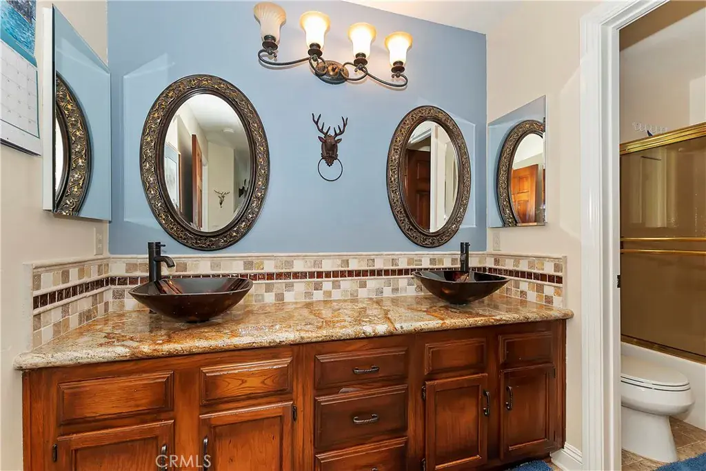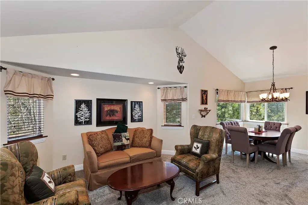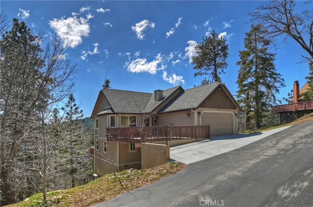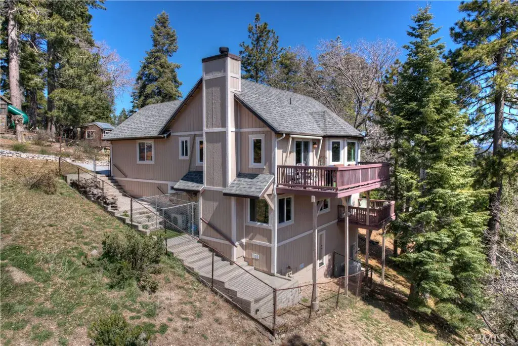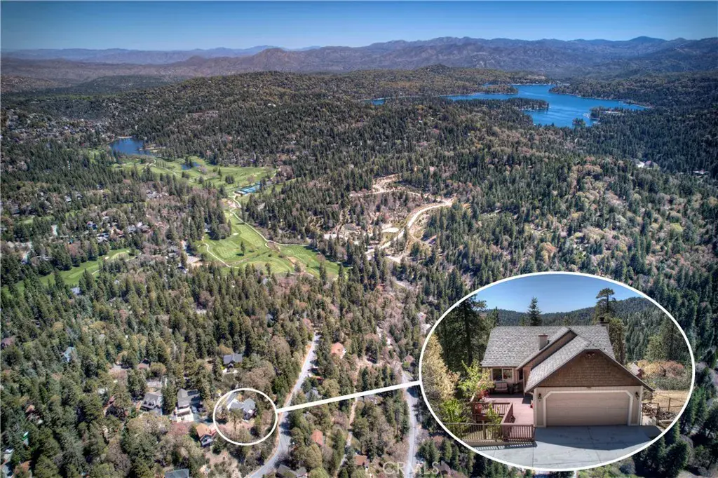 Experience the magic of Lake Arrowhead living with sweeping, long-distance panoramic forest views and exceptional privacy on a rare 17,000+ sq ft double lot. This beautifully upgraded mountain retreat, offered mostly furnished, delivers space, serenity, over $100,000 in recent enhancements and, of course, FULL LAKE RIGHTS. Step inside to warm, inviting living spaces, including a cozy family room with a wood-burning fireplace — the perfect mountain ambiance. Newer luxury carpeting flows throughout both levels, complementing the updated kitchen featuring granite countertops and refreshed cabinetry. Designed for comfort and resilience, the home now includes a 14KW Generac® whole-house standby generator with internet monitoring, 1-ton Daikin® air conditioning serving both levels, dual-pane windows, three low-maintenance TREX® decks and, a newer SunSetter® awning that extends your outdoor enjoyment. Outdoor living truly shines here. The main deck flows from the living room, while a second deck off the primary suite captures additional breathtaking panoramic views and creates a peaceful retreat. The third trex deck, located at the front of the house, offers an expansive gathering area, as well. The newer concrete driveway provides level, direct access from the 2-car garage plus expanded parking for guests or boat storage. And, the newer retaining wall with safety railing enhances both function and curb appeal. Pet lovers will appreciate the fully enclosed, top-to-bottom fenced area directly off the laundry room — a secure and protected outdoor space. Additional fenced areas offer expansion potential. Mature producing fruit trees — cherry, apple, and pear — add to the charm and lifestyle appeal. As an added bonus, the seller will include a newer 24” Ariens® snow blower (with chains and upgrades) — making mountain living turnkey and ready for all seasons. Three bedrooms, 2.5 baths, with an open family room with fireplace, separate living room, & dining room, and unmatched long-distance forest views complete this exceptional opportunity. Ask your agent for the comprehensive list of recent improvements — this one is truly special.
